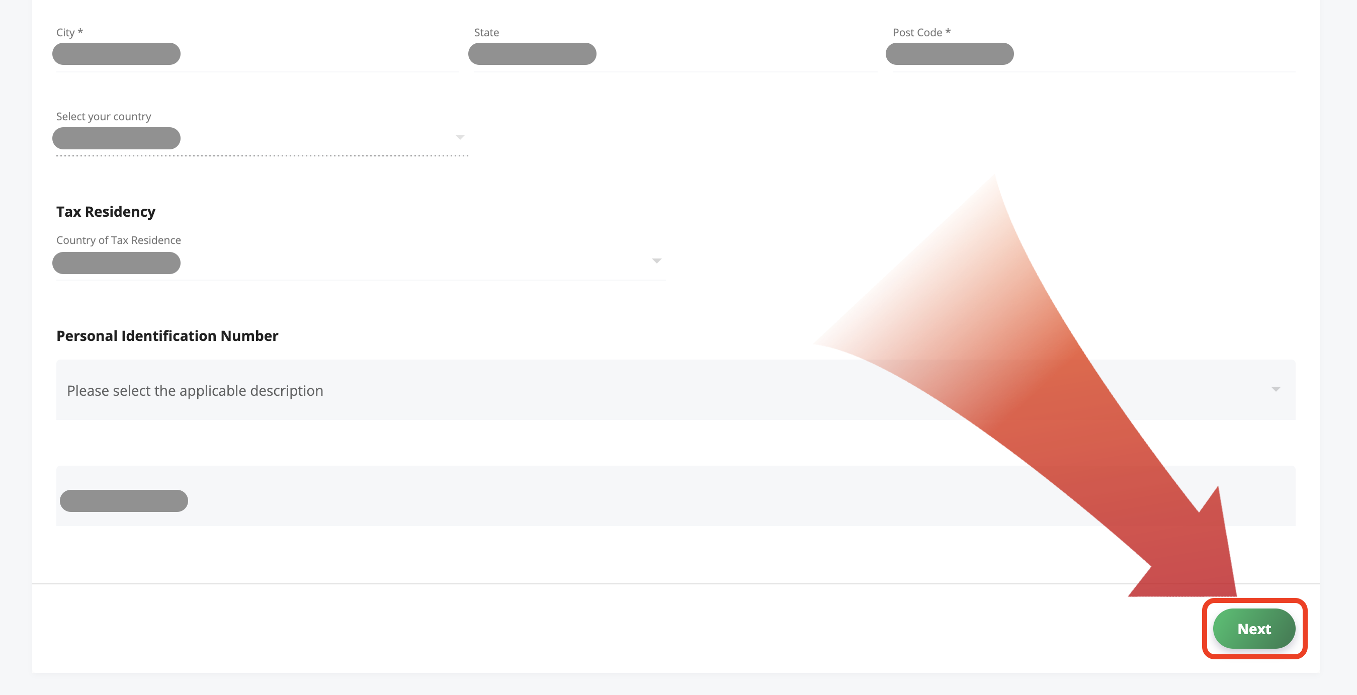 Eightcap will ask you for your personal information such as residence country, address, identification number. After filling all the necessary information click “Next”.