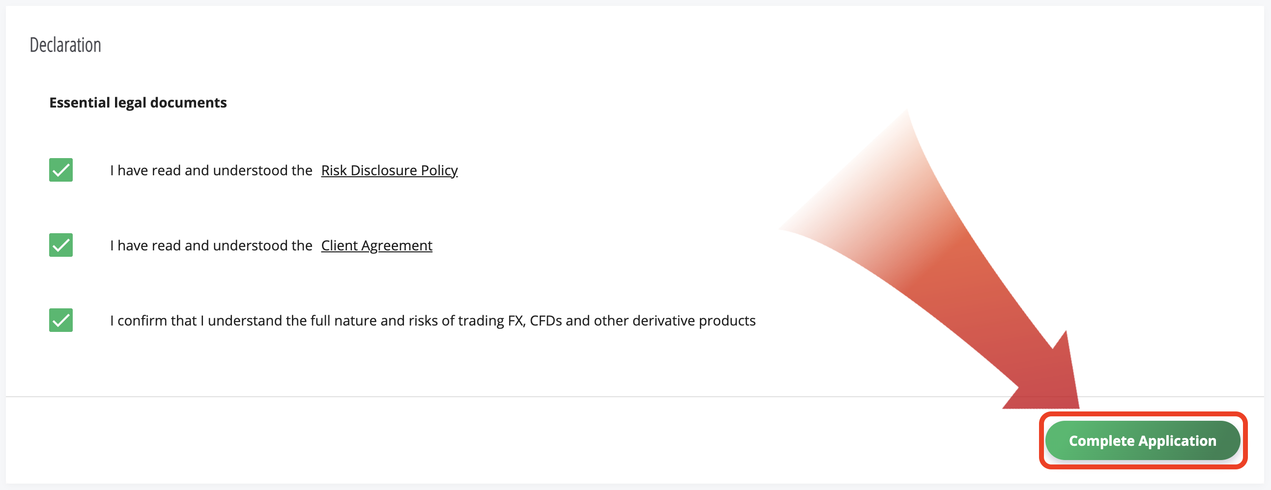 In this step you need to accept all the terms. Make sure that you have responded correctly through the registration process. Click “Complete Application” to finish the registration.