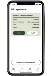 Ovan visas en bild på hur Aktieinvests aktieapp ser ut på en iPhone. I detta exempel visas hur du enkelt kan välja att investera i en av deras redan ihopsatta portföljer. Den givna portföljen fördelar ditt kapital mellan olika investmentbolag.