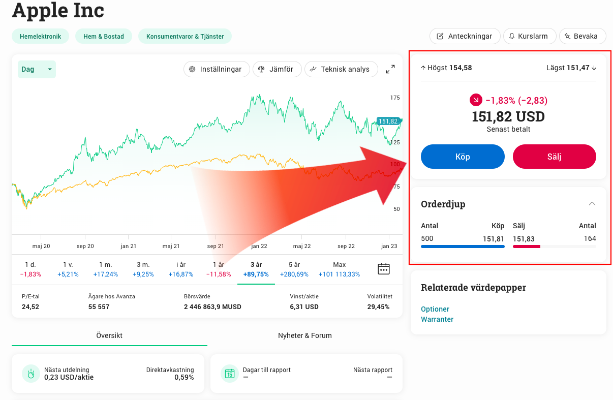 • Utbud: 25 000+ aktier
