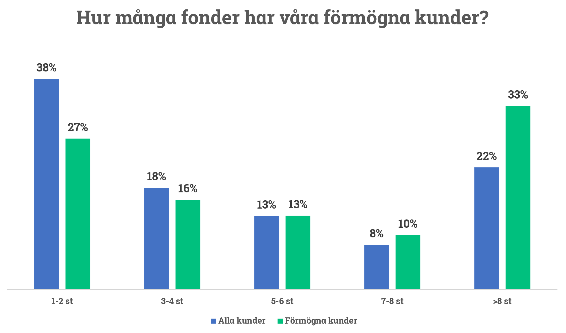 Det finns många personer som skapat sig en förmögenhet på ett sparande i fonder. Nedan kan du se statistik från Avanzas förmögna kunder och hur många fonder de äger i sina respektive investeringsportföljer. Statistiken visar på att Avanzas förmögna kunder äger mellan 1 – 8 fonder.
