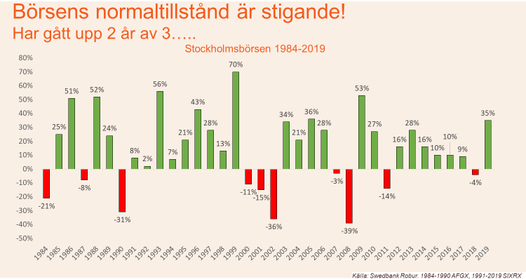 Som går att se i tabellen ovan pendlar börsen ständigt från år till år. Det finns möjlighet till att utnyttja kursrörelserna antingen kortsiktigt eller långsiktigt.