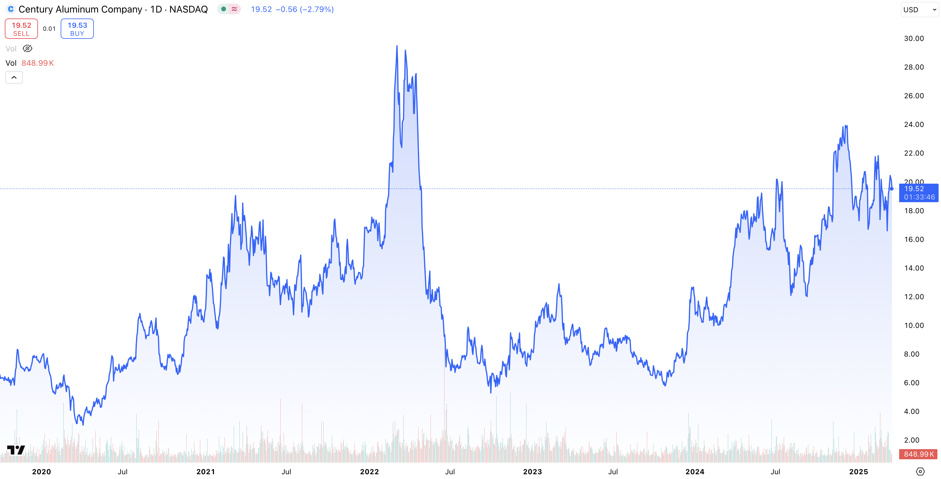 Funderar du på att investera i Century Aluminium? Deras aktie CENX finns tillgänglig att handla här.