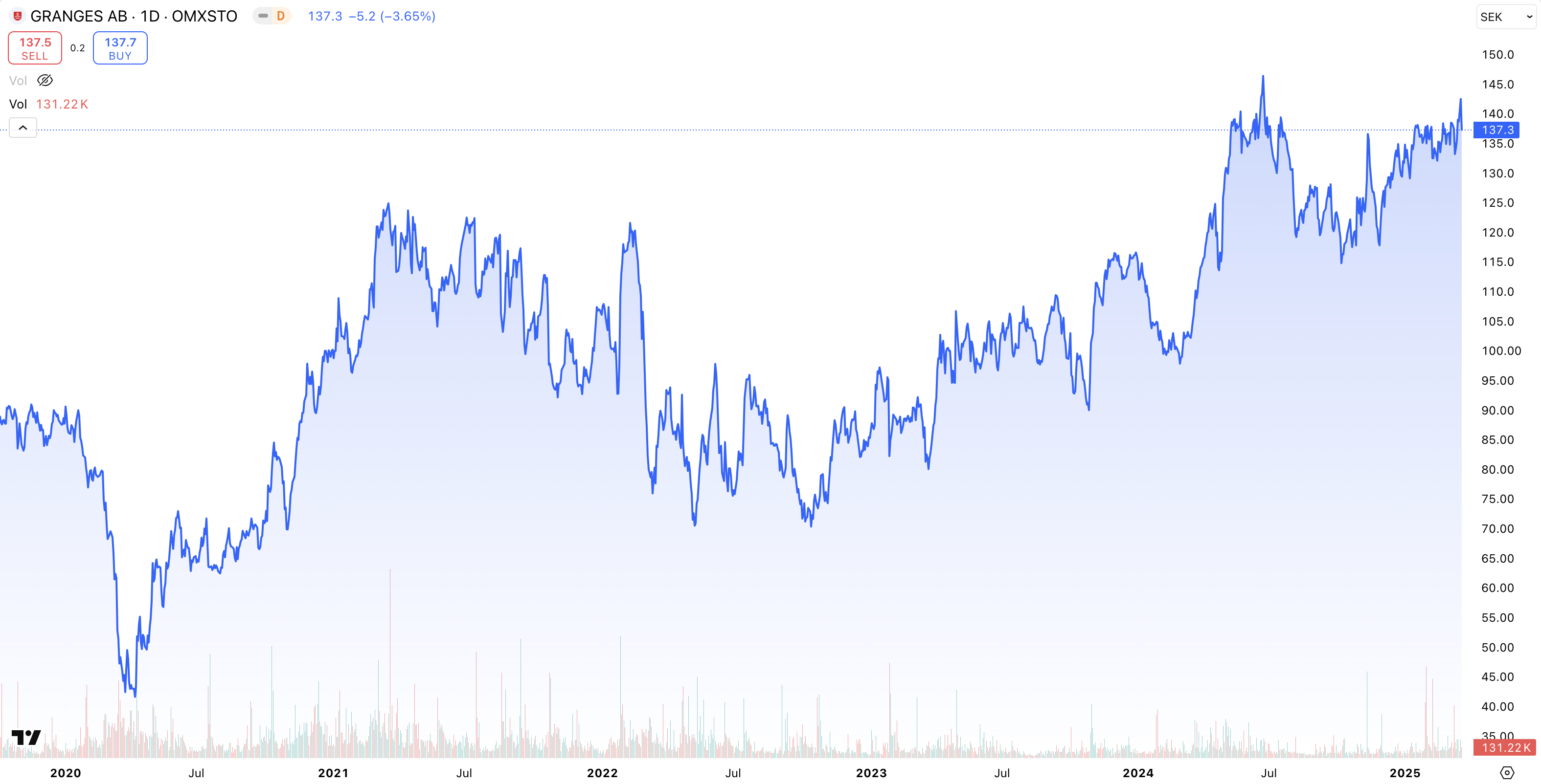 • Aktiekursutveckling: + 45 % (2020 – 2025)