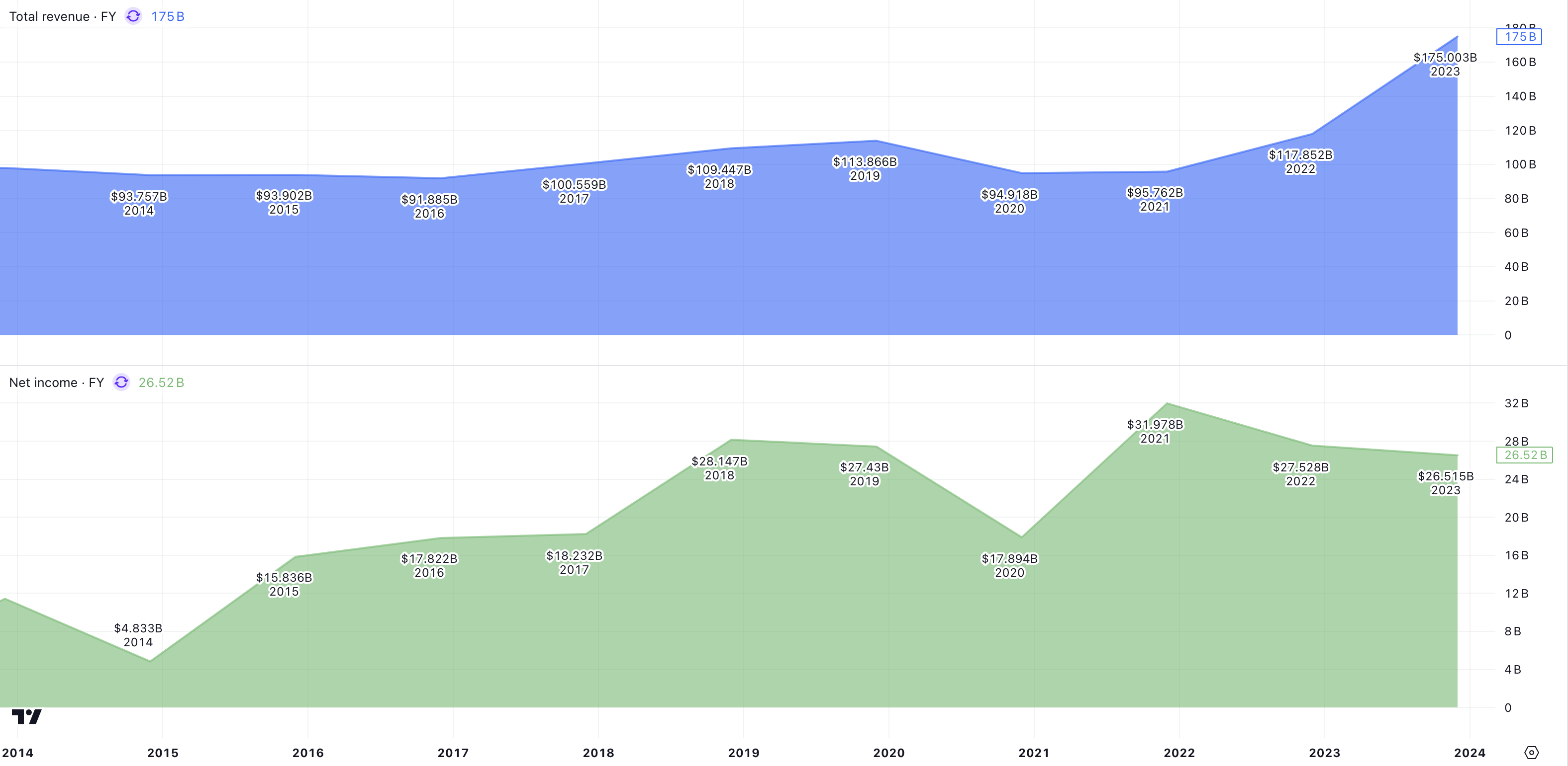 • Senaste vinstresultat: 175 miljarder USD