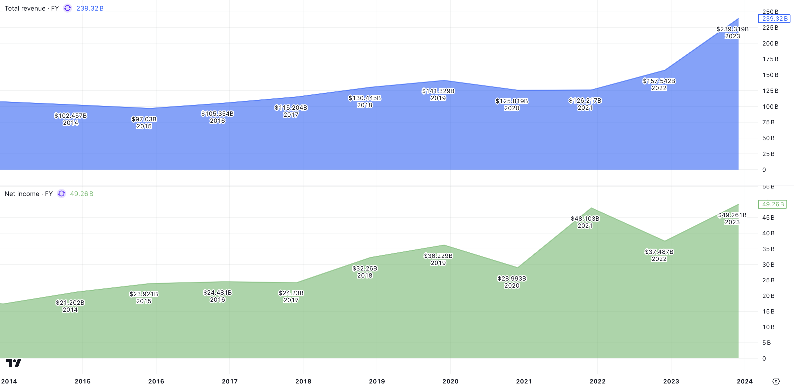 • Senaste vinstresultat: 239 miljarder USD