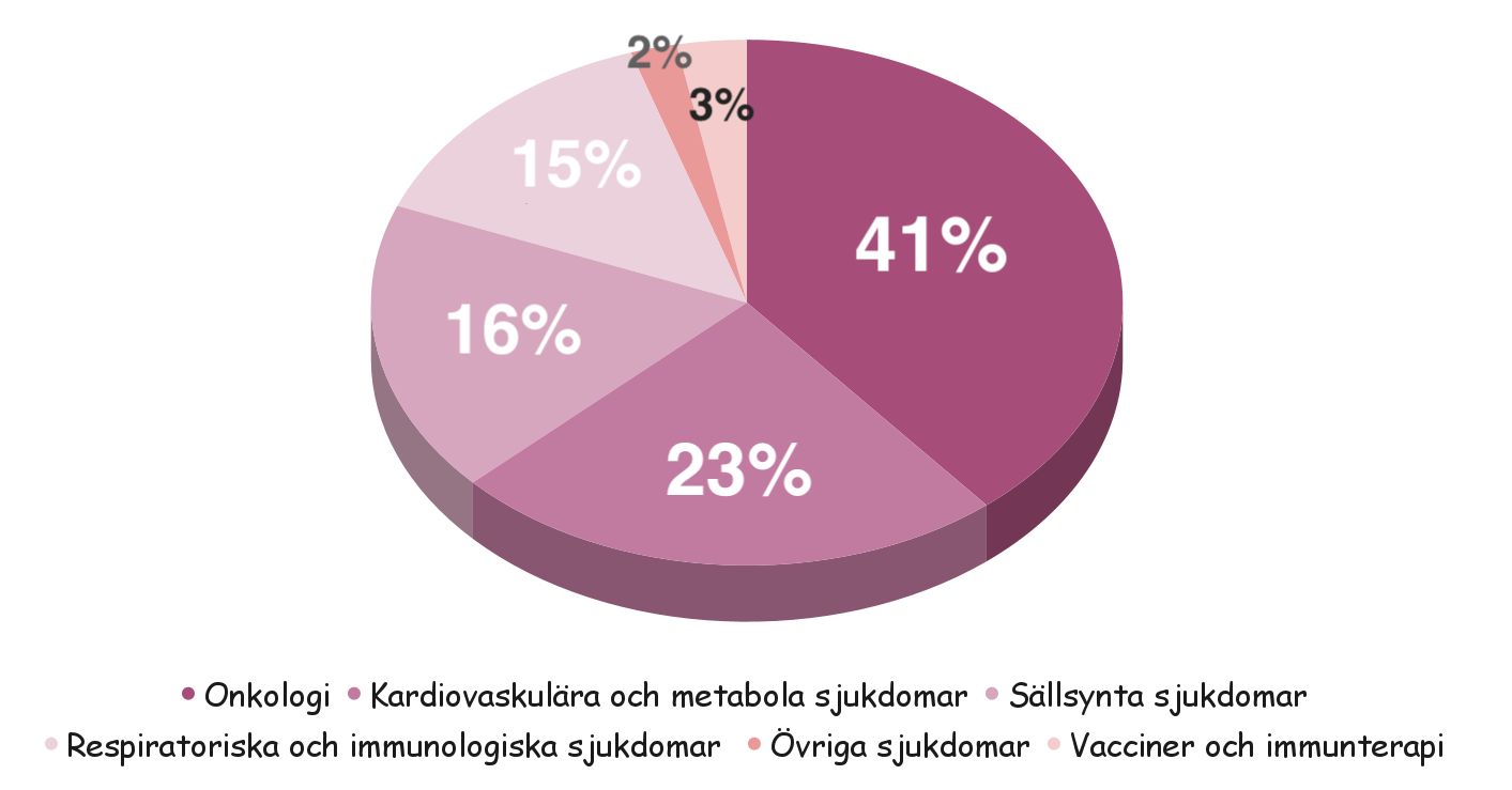 Cirkeldiagrammet ovan visar fördelningen av bolagets omsättning över de olika terapeutiska områdena.