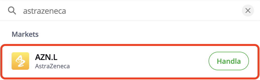 Har du pengar på ditt konto? Då klickar vi på sökknappen, söker efter AstraZeneca aktie.