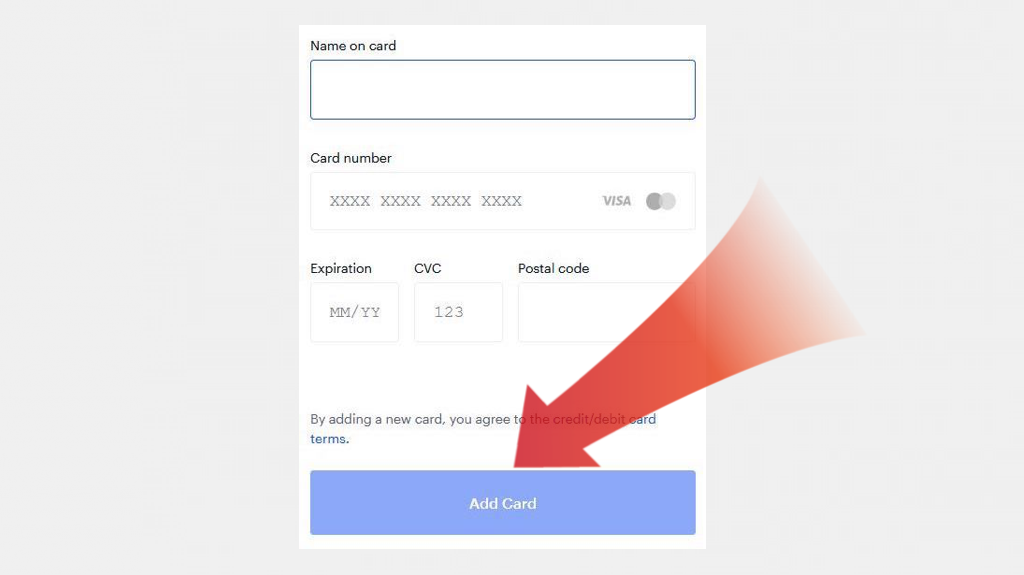 Gå till “Settings” och därefter till “Payment Methods”. Där kan du välja bland flera olika betalningsalternativ. Kortbetalning är det snabbaste alternativet då pengarna kan användas för handel inom 1 – 2 minuter. Fyll i dina kortuppgifter och klicka på “Add Card”.
