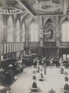Londonbörsen kom att bli världens största börs under en längre tid ända fram till slutet av första världskriget då NYSE tog över platsen. Bilden nedan visar Londonbörsen från år 1810.