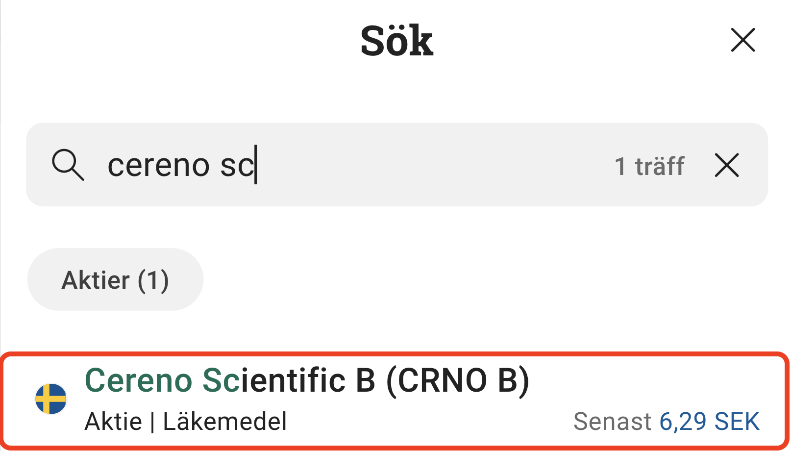 4. Sök efter Cereno Scientific aktie