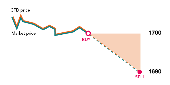 När du handlar med CFD:s kan du antingen välja att köpa eller sälja CFD kontrakt. Att köpa CFD gör du när du tror att priset på tillgången som kontraktet speglar kommer att öka. Om du istället tror att priset kommer att sjunka ska du sälja CFD. Förändringen i värdet på din position speglas av rörelsen i den underliggande marknaden.