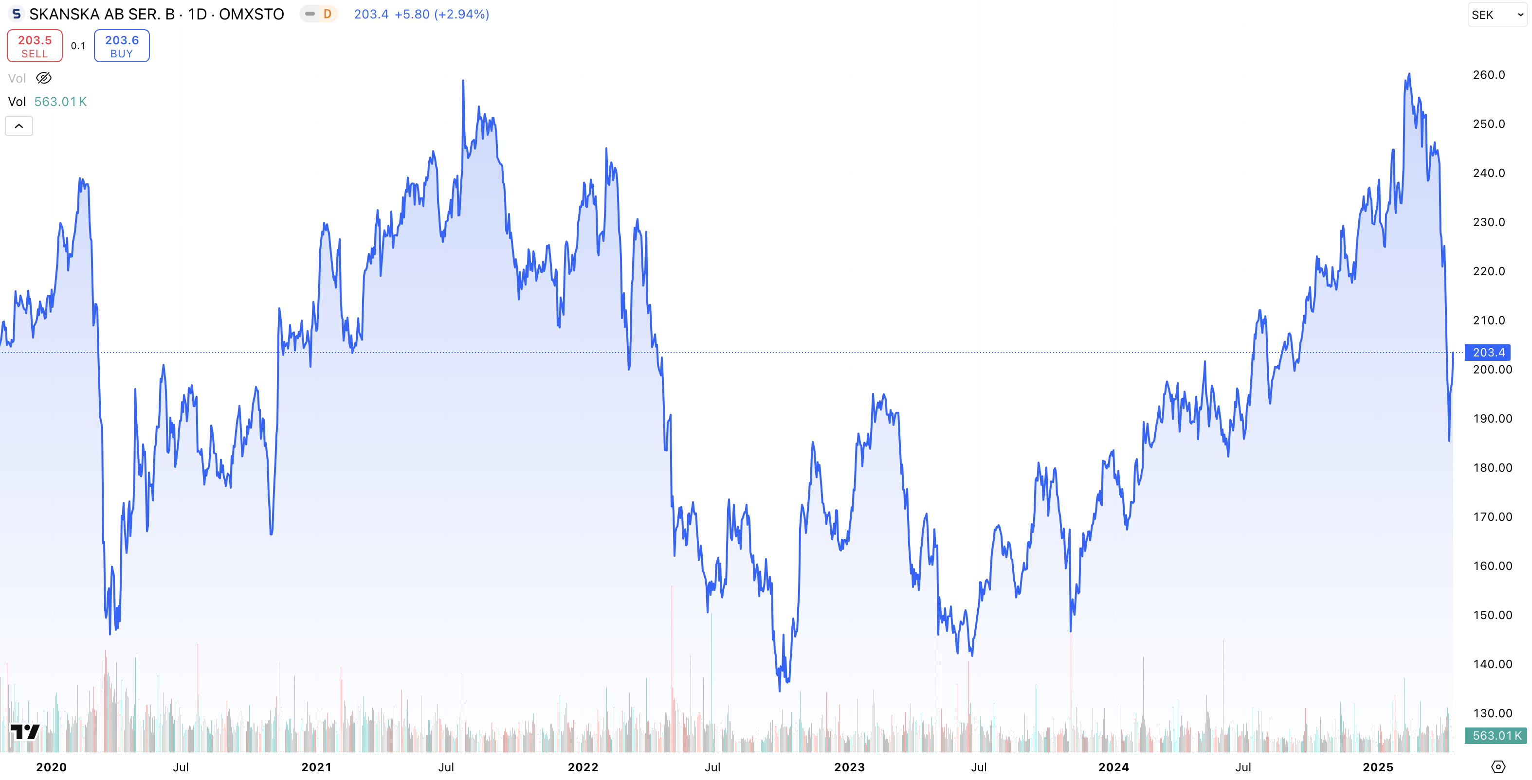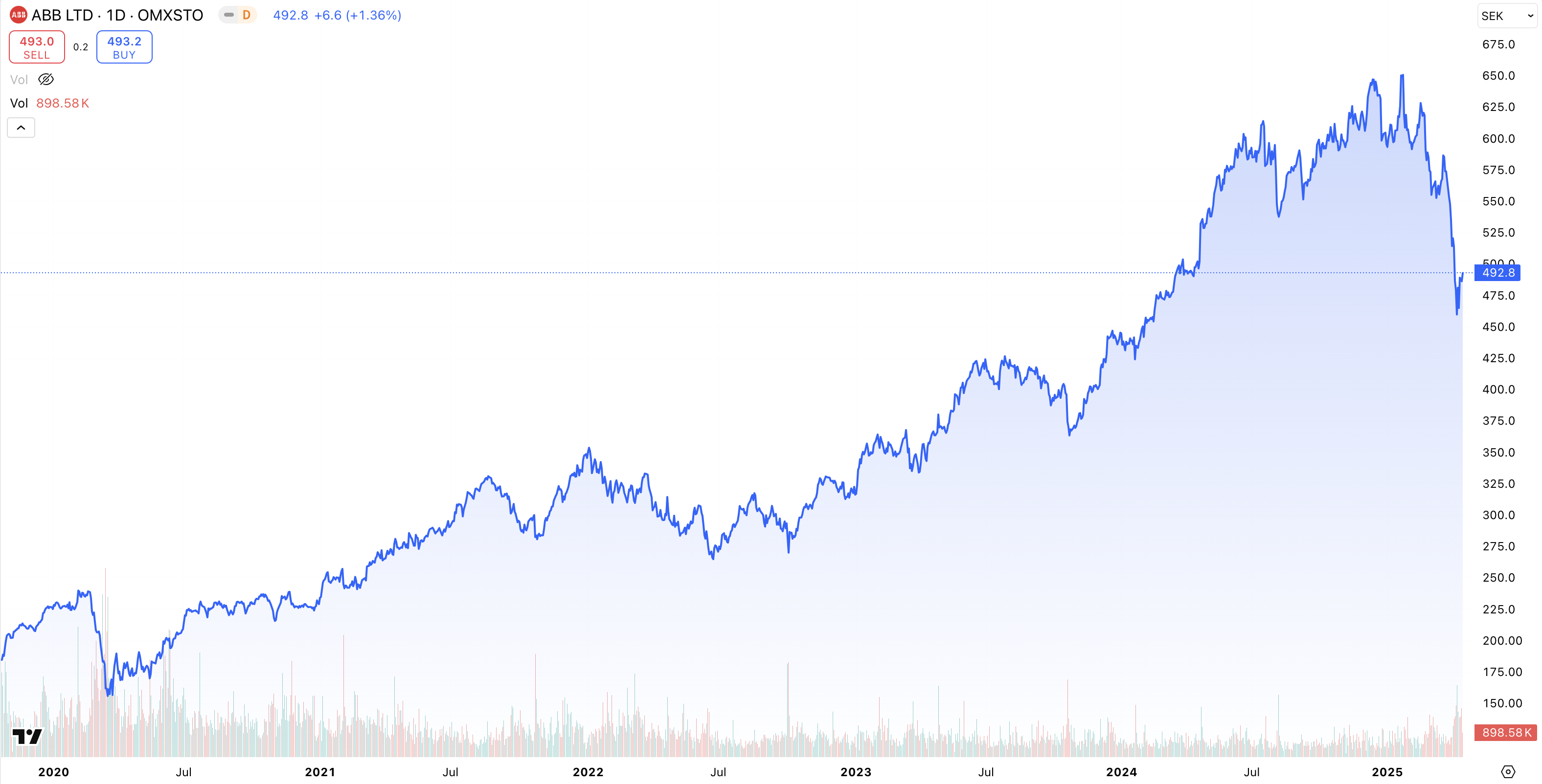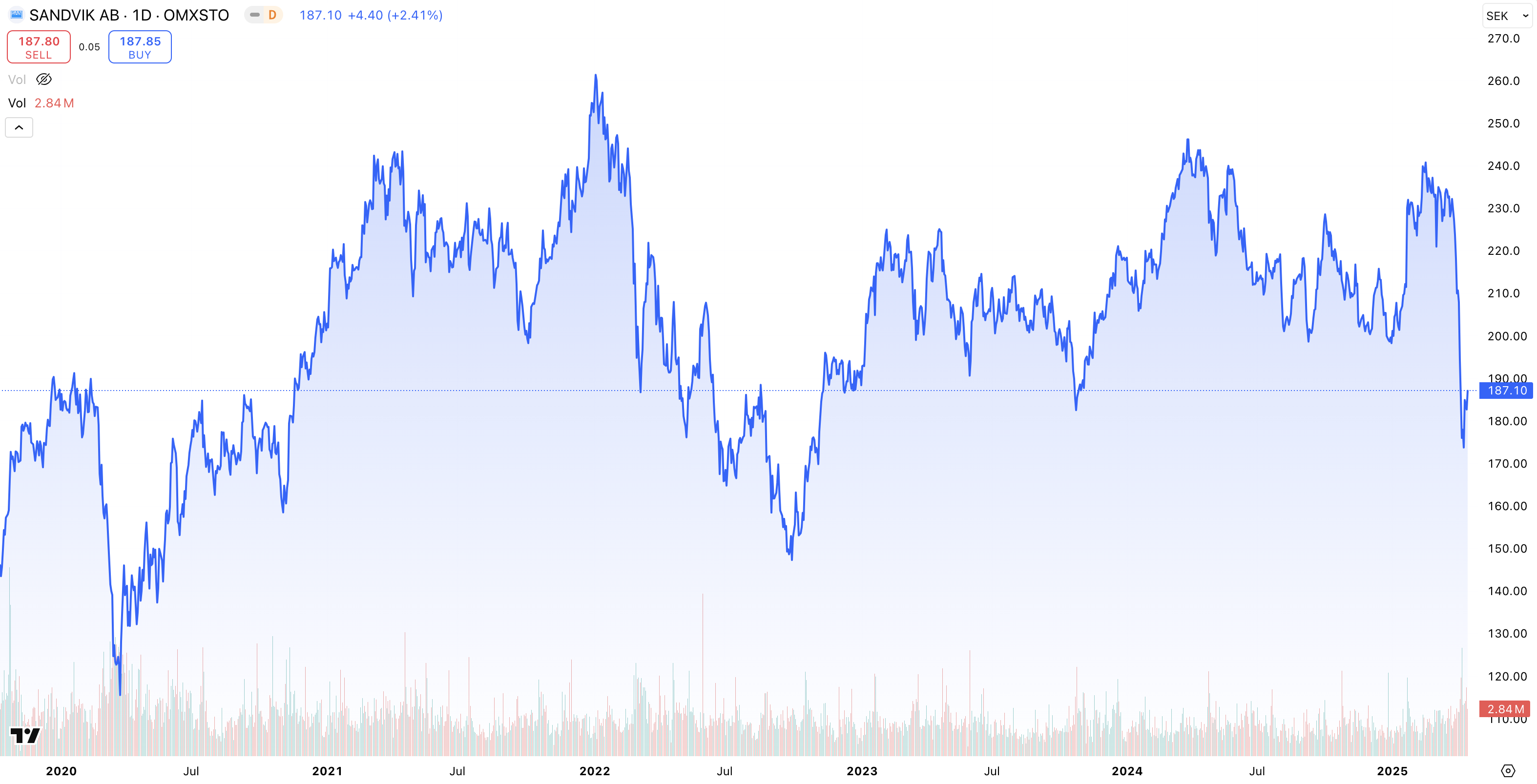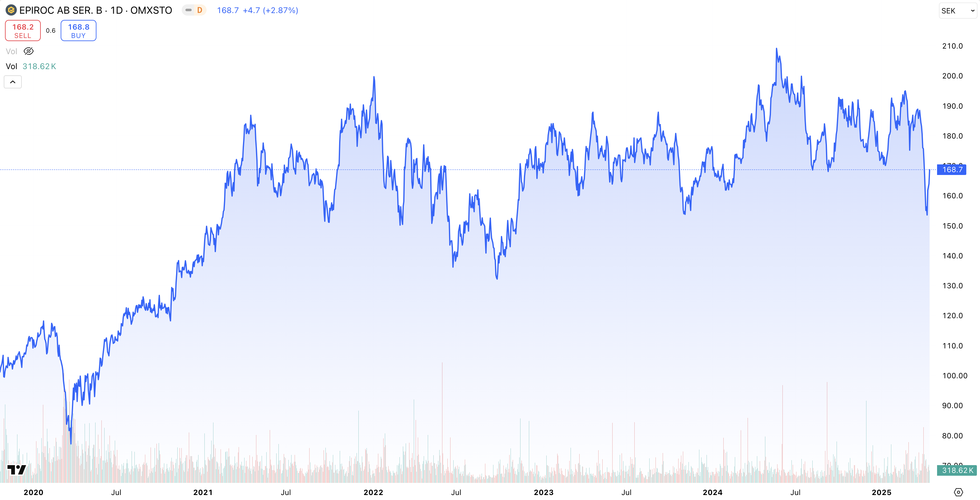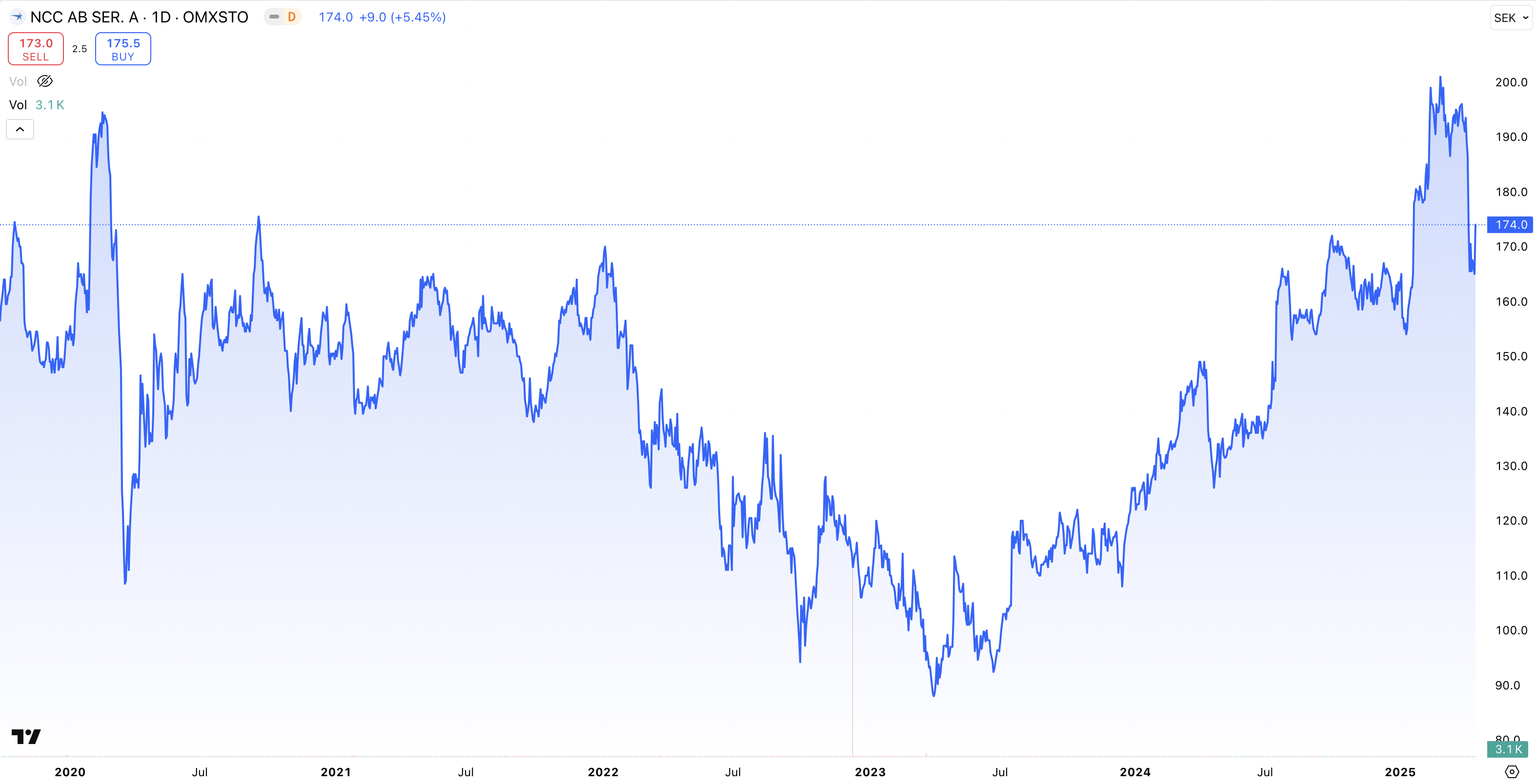 • Kursutveckling 5 år: + 169 % (2020 – 2025)