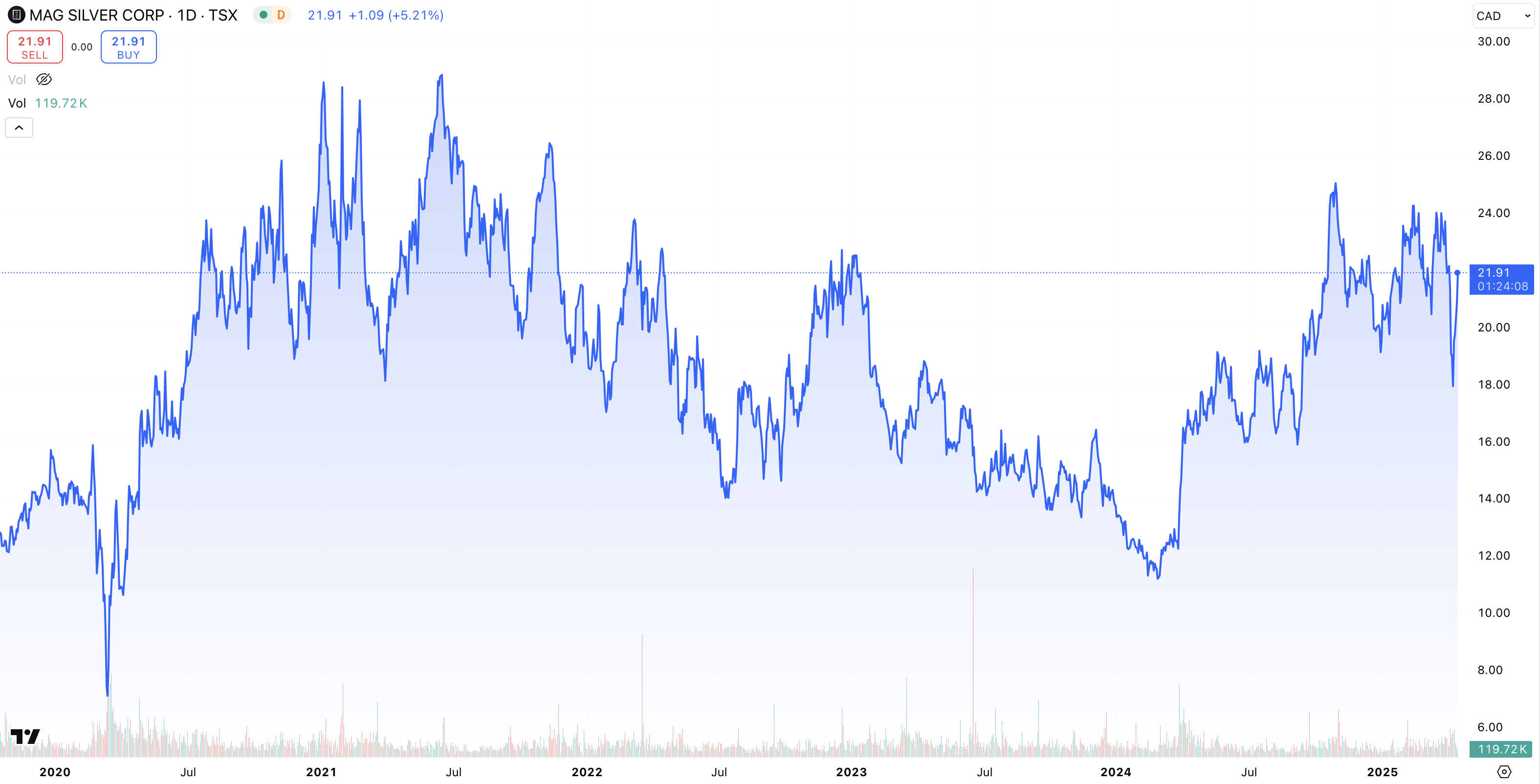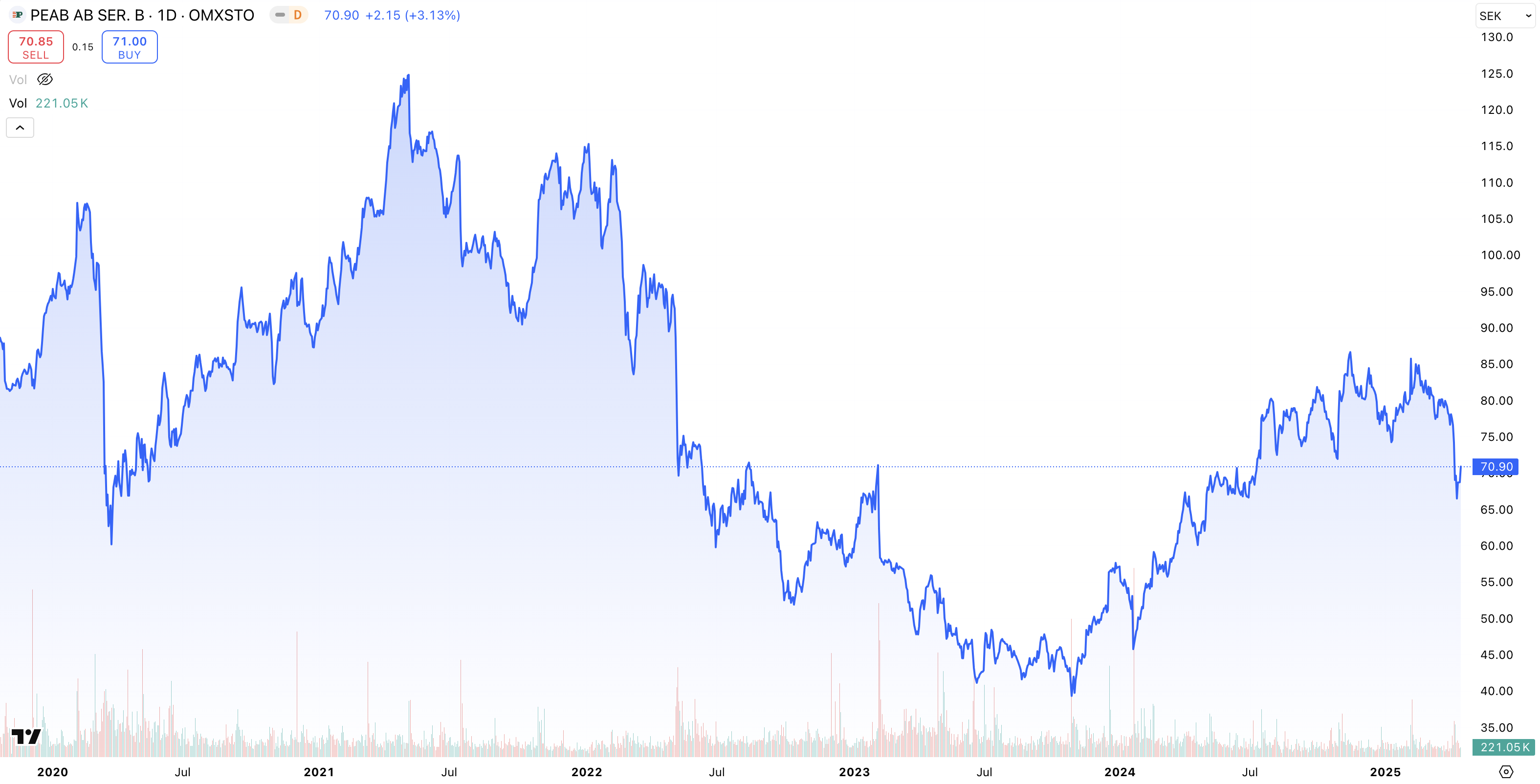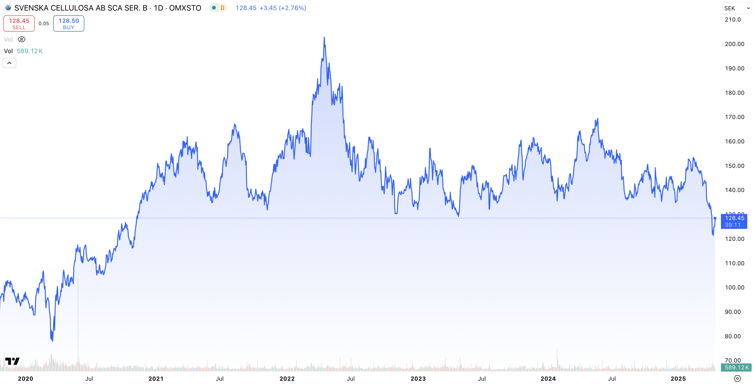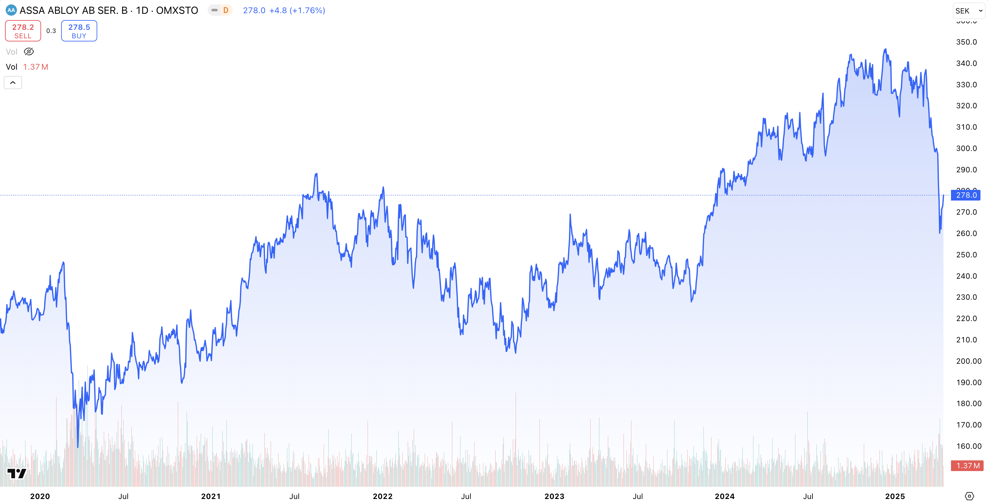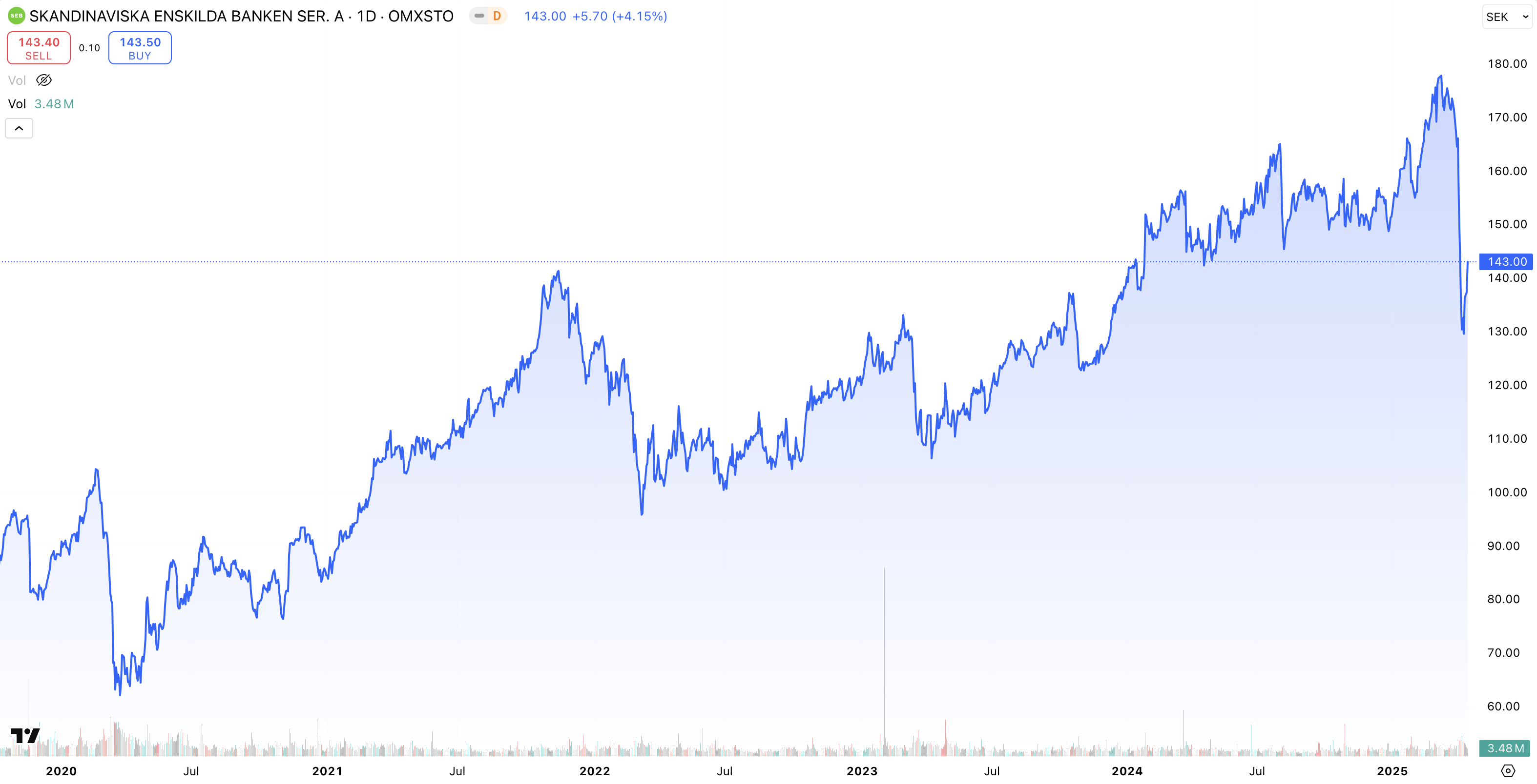 • Kursutveckling 5 år: + 169 % (2020 – 2025)