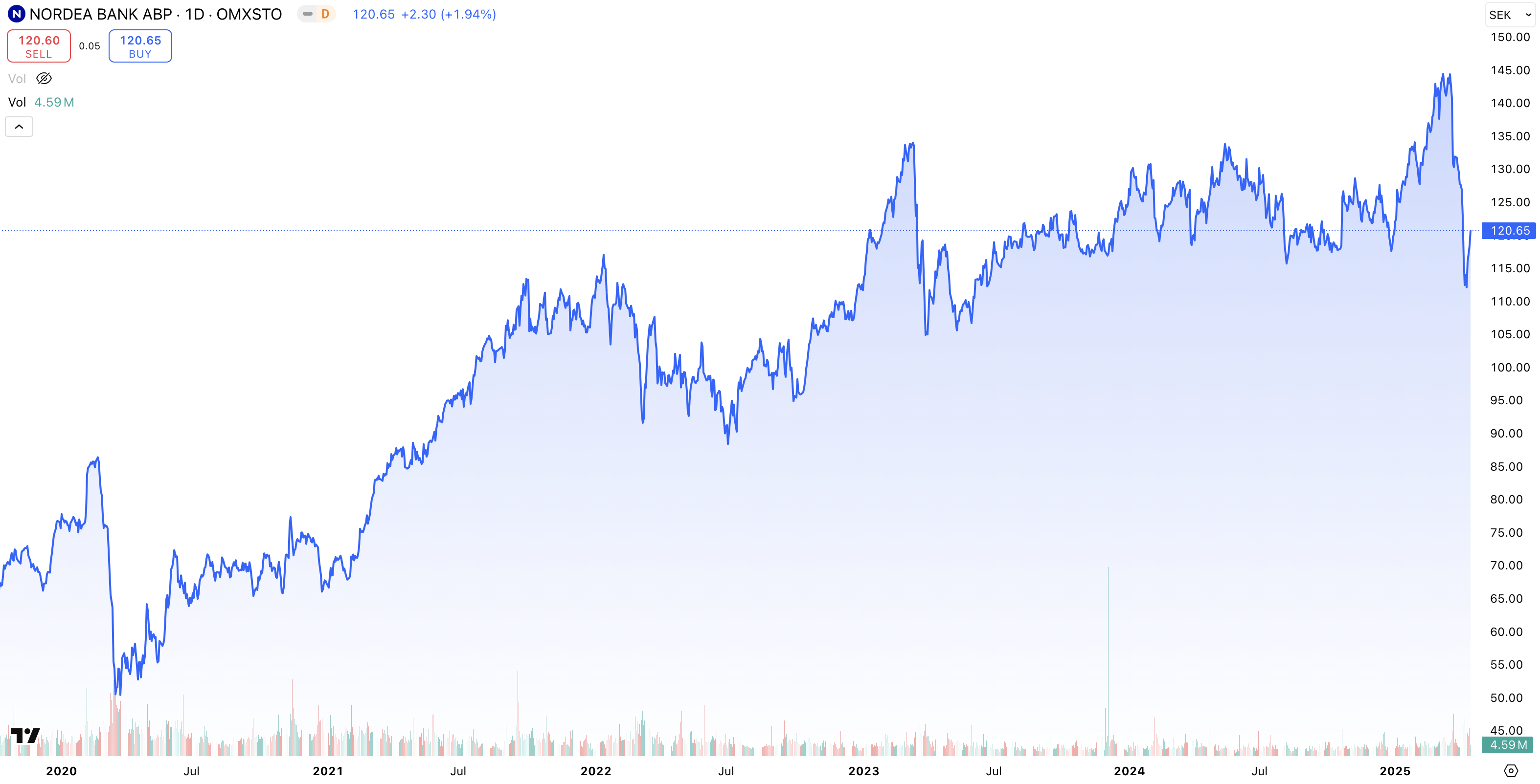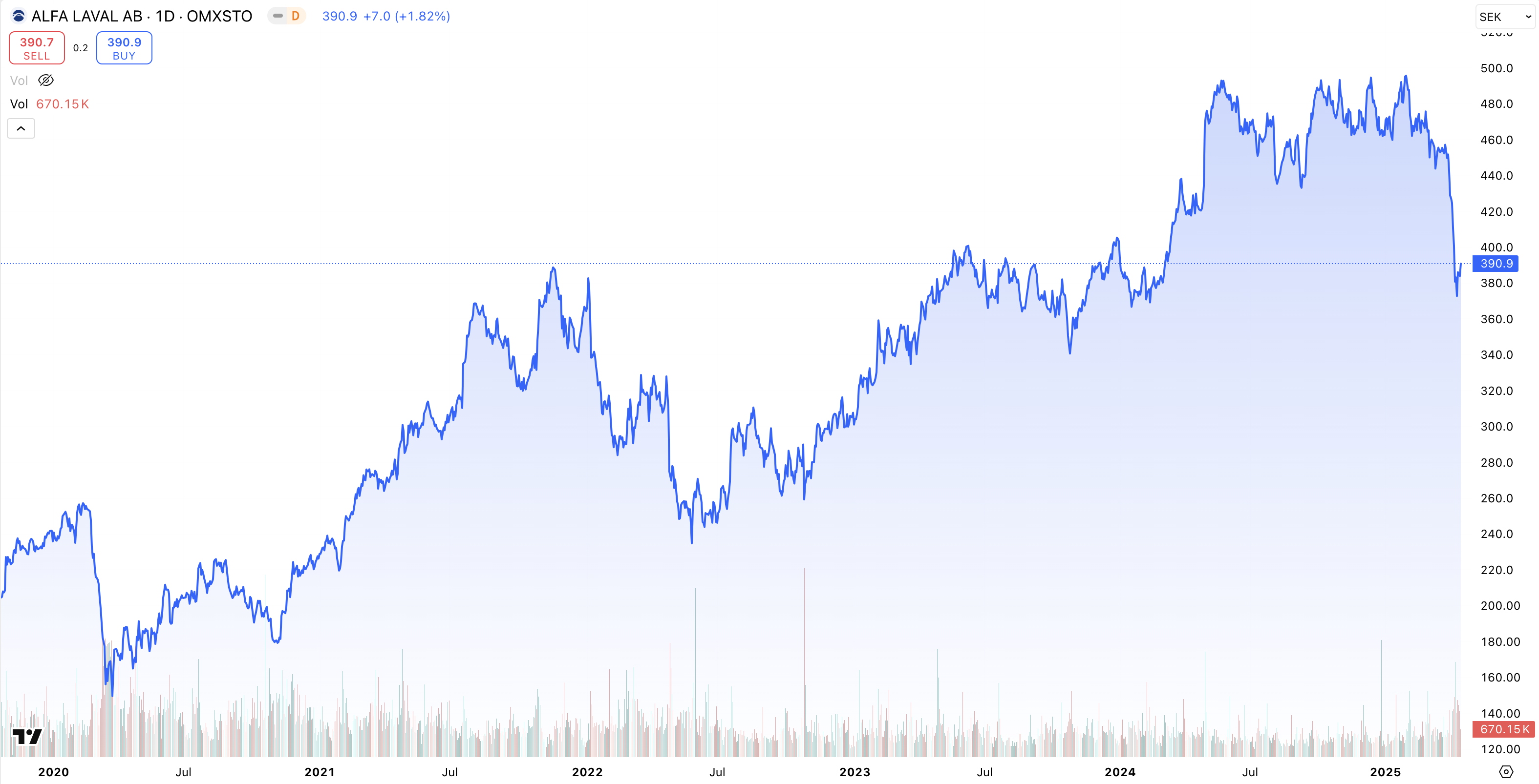 • Kursutveckling 5 år: + 34 % (2020 – 2025)
