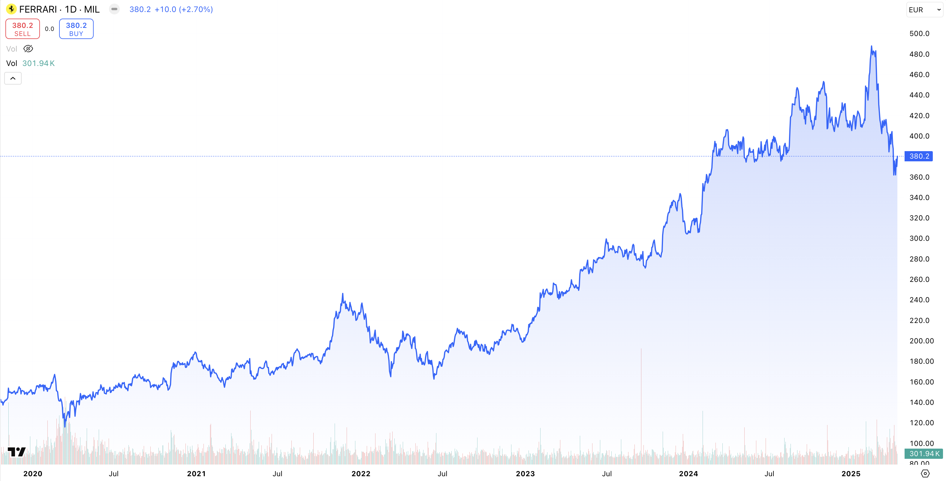Funderar du på att investera i Ferrari? Deras aktie RACEm finns tillgänglig att handla här.