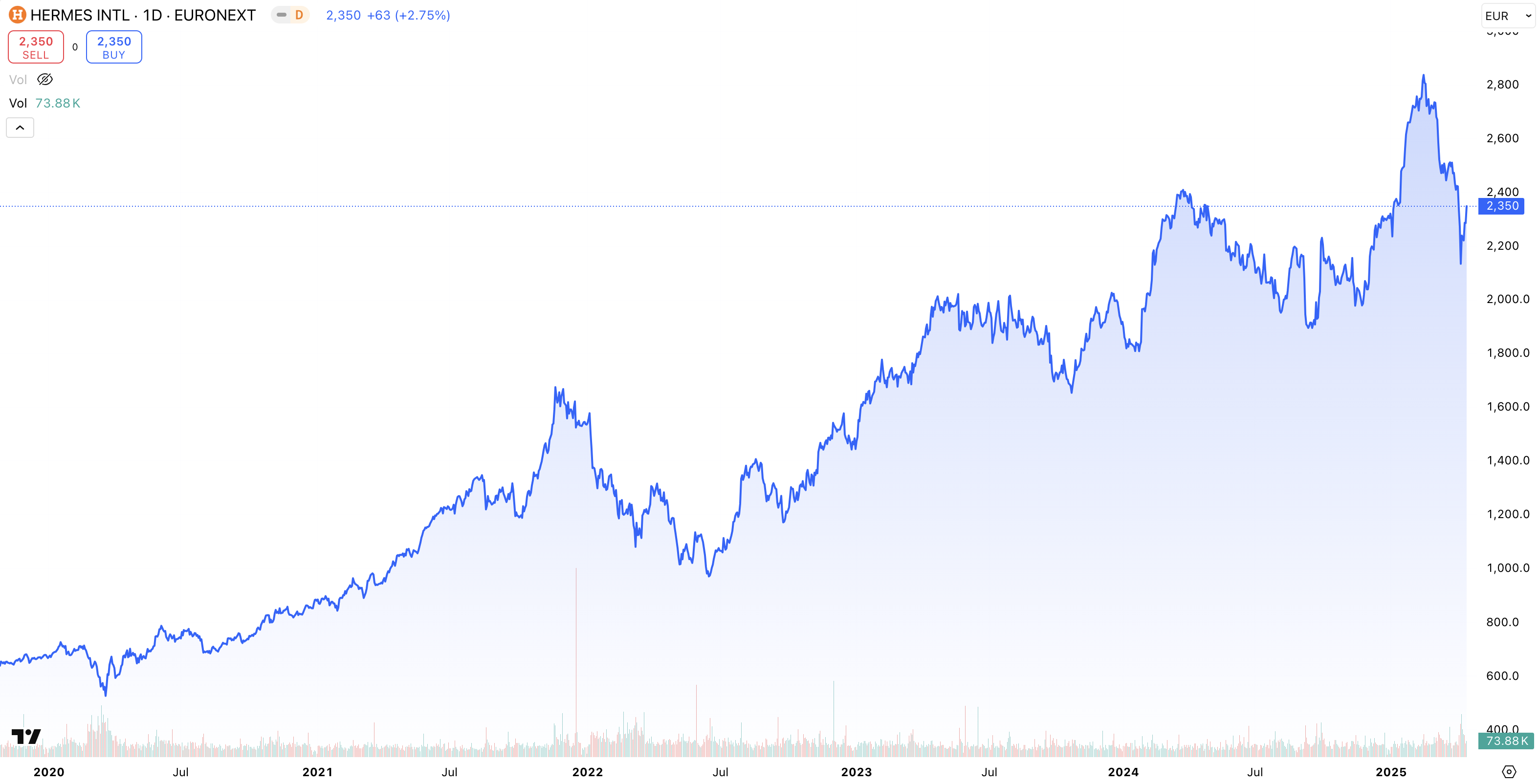 Funderar du på att investera i Hermes International? Deras aktie RMSp finns tillgänglig att handla här.