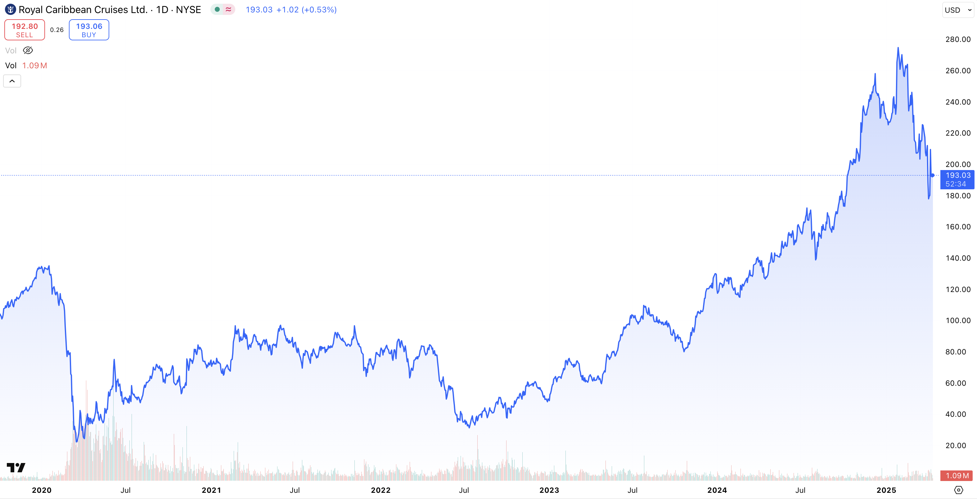 | 3 | Royal Caribbean Cruises | 478 % | Turist- och resebolag |