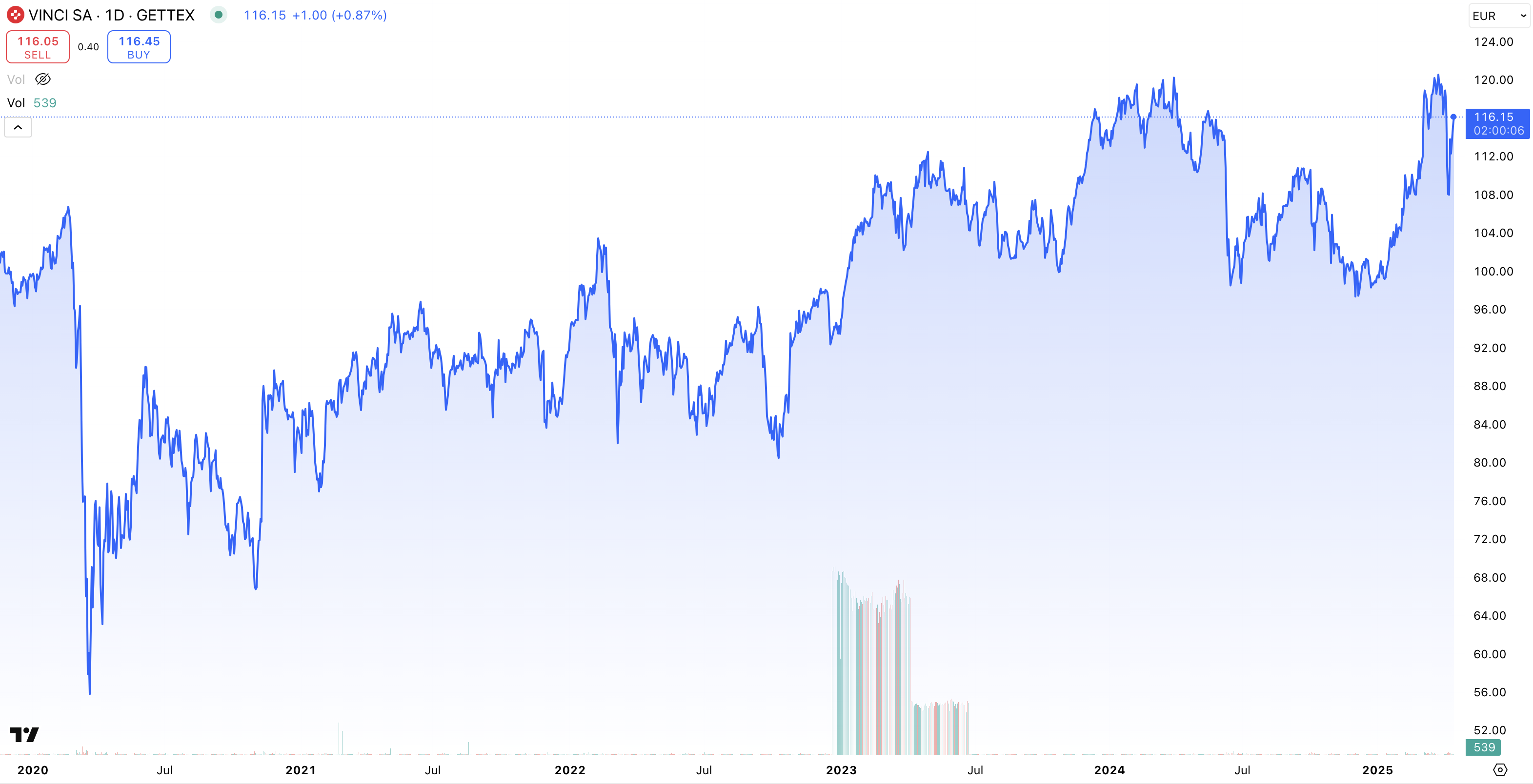 • Kursutveckling 5 år: + 53 % (2020 – 2025)