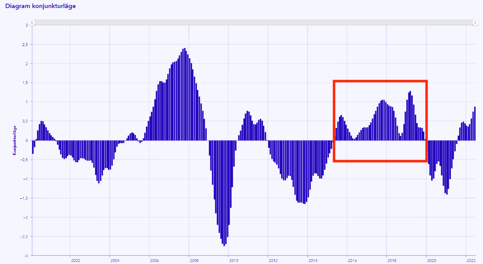(Bildkälla: SCB – Graf A, Konjunktur mätt i BNP-indikator månad)
