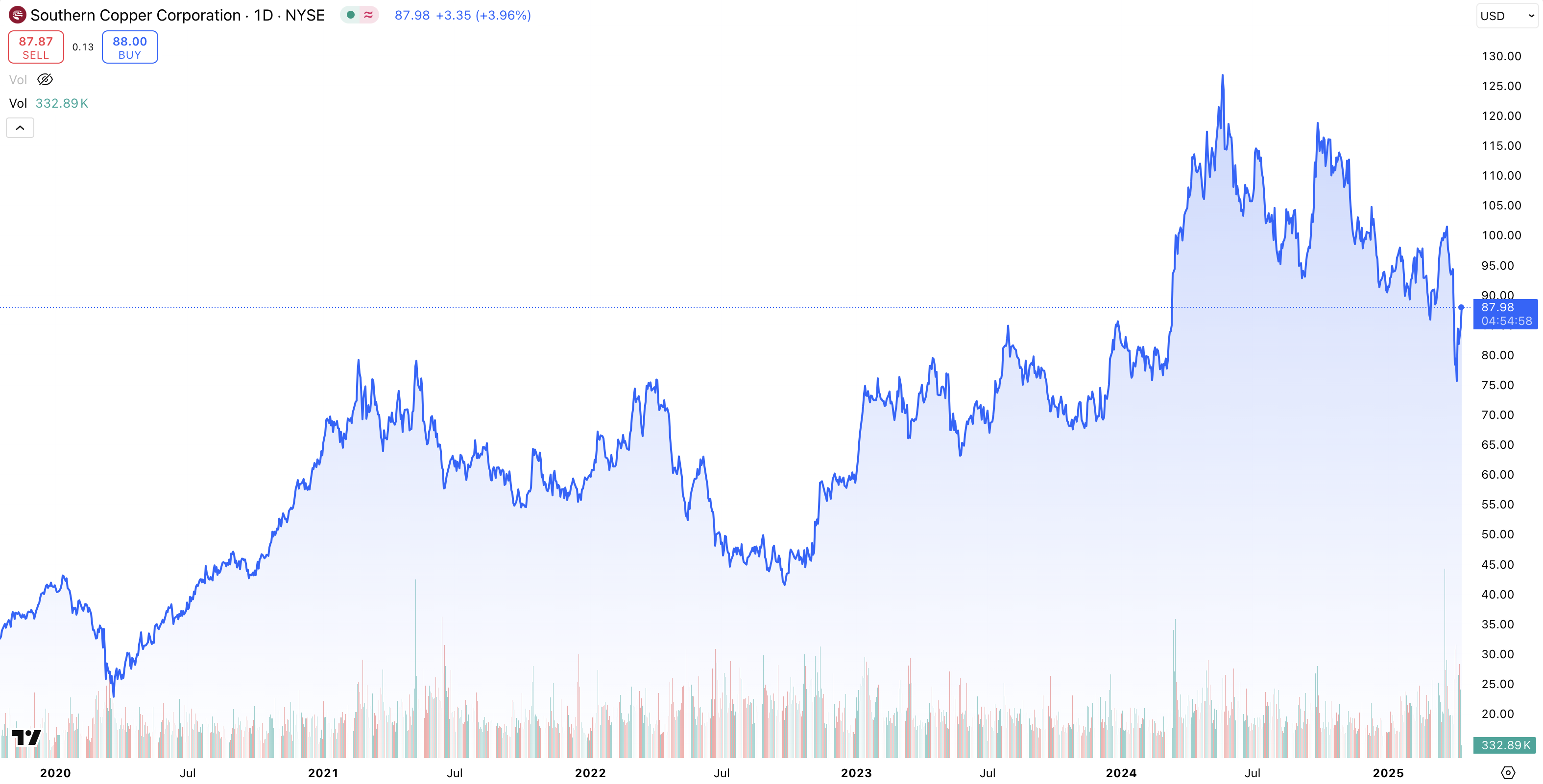 • Kursutveckling 5 år: + 268 % (2020 – 2025)