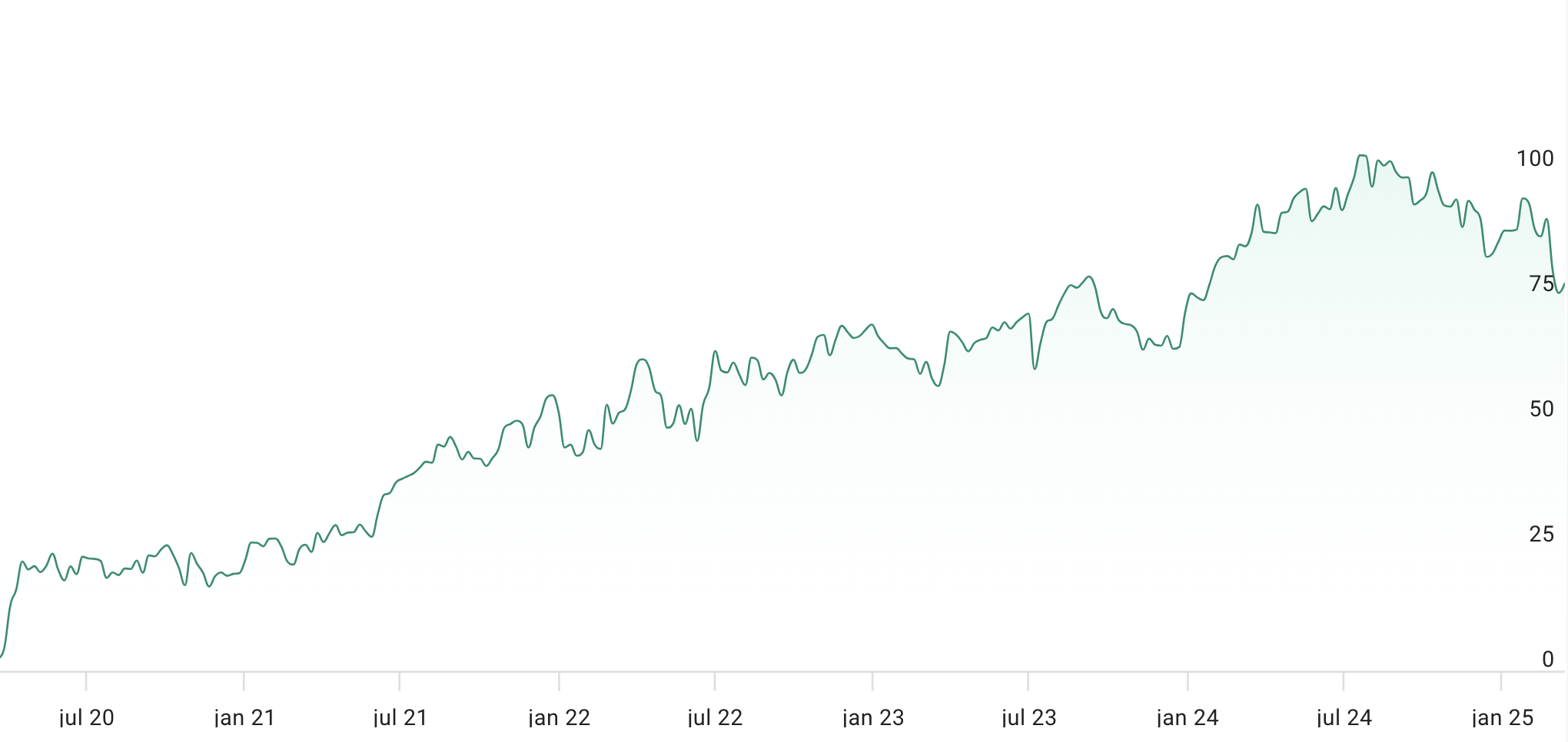 • Historisk avkastning: + 74 % (2020 – 2025)