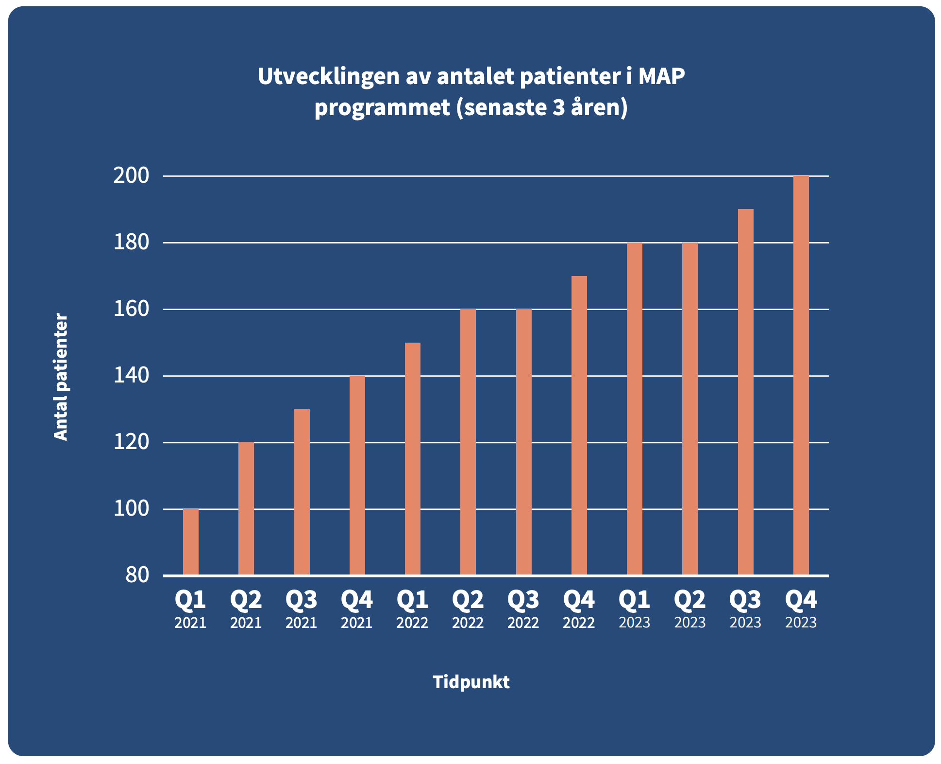 OBS: I början av 2025 var det fortfarande cirka 200 patienter, i över 25 länder, som fått behandling med Emcitate genom det så kallade MAP-programmet.
