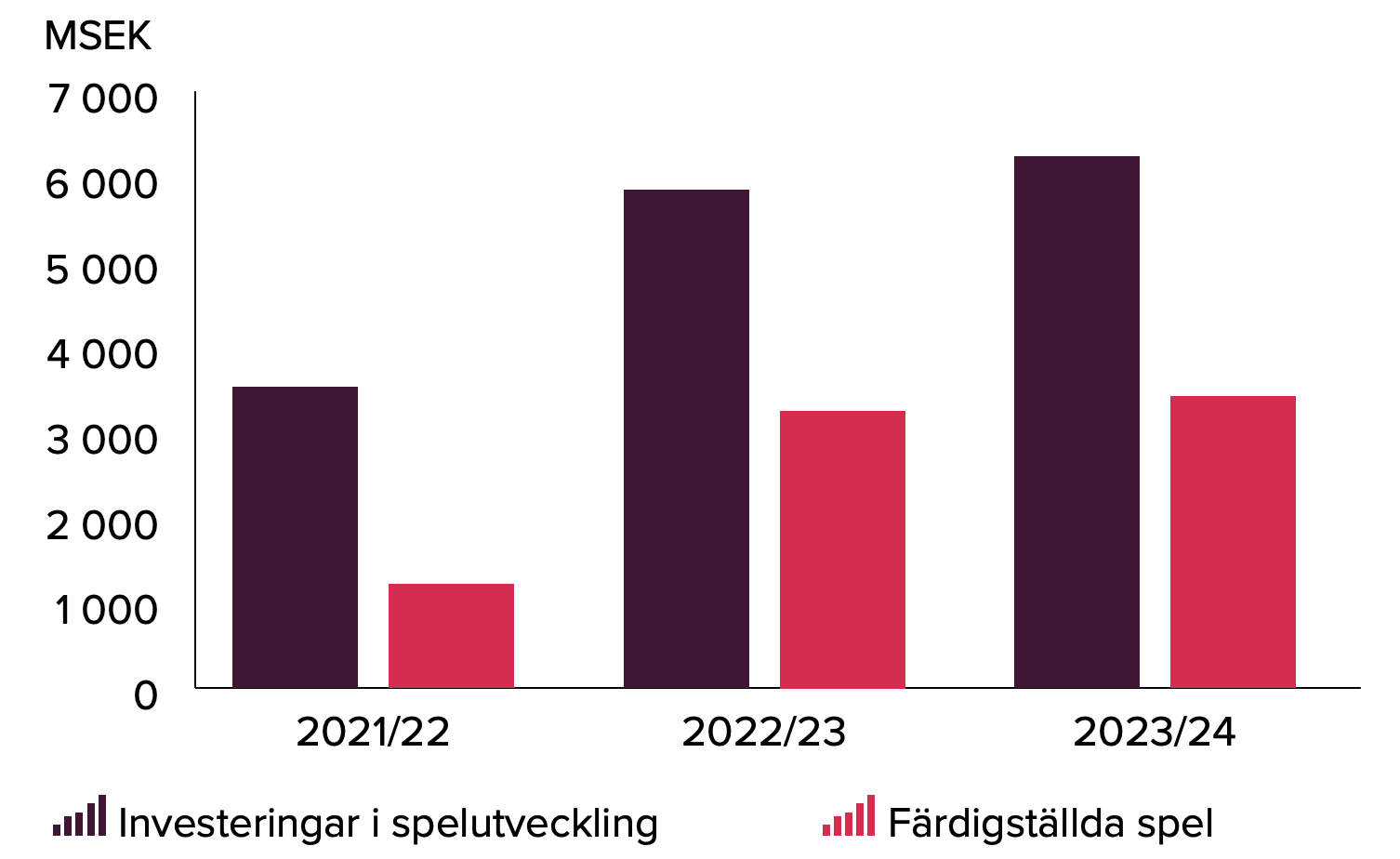 Störst andel tillgångar utgjordes av immateriella tillgångar och goodwill. Immateriella tillgångar, i form av spelvarumärken, mjukvara och rättigheter uppgick till 37 mdkr. Goodwill, som speglar ett överpris som betalas vid ett företagsförvärv, uppgick till 31 mdkr.
