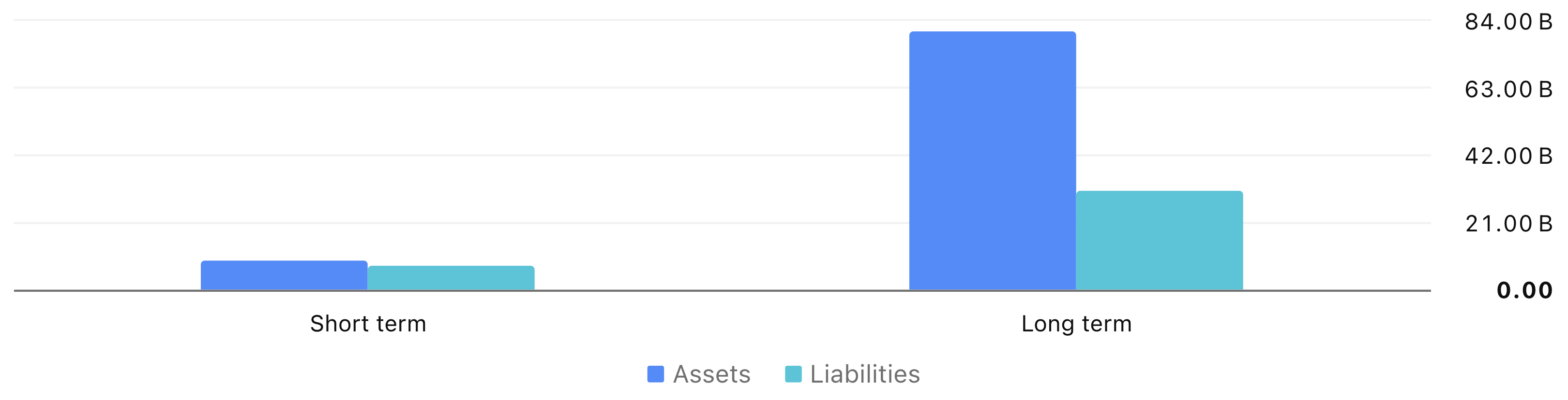 - Långsiktiga skulder (med en löptid på över 1 år) uppgick till 30,89 mdkr.