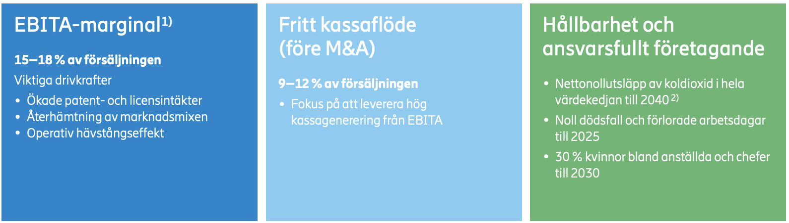 Sedan Börje Ekholm tillträdde som ny VD har bolaget uppvisat positiva vinstresultat flera år på raken. Han har “städat upp” och fått ordning på verksamheten och satt upp tydliga finansiella mål. Bland annat vill Ericsson på sikt kunna uppnå fritt kassaflödesmarginal på mellan 9 – 12 % (se bild nedan).