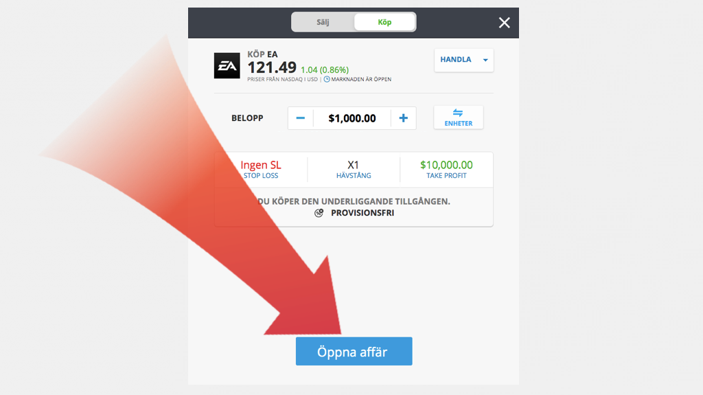 Sista steget är att ange beloppet och klicka på ”Ange order”.