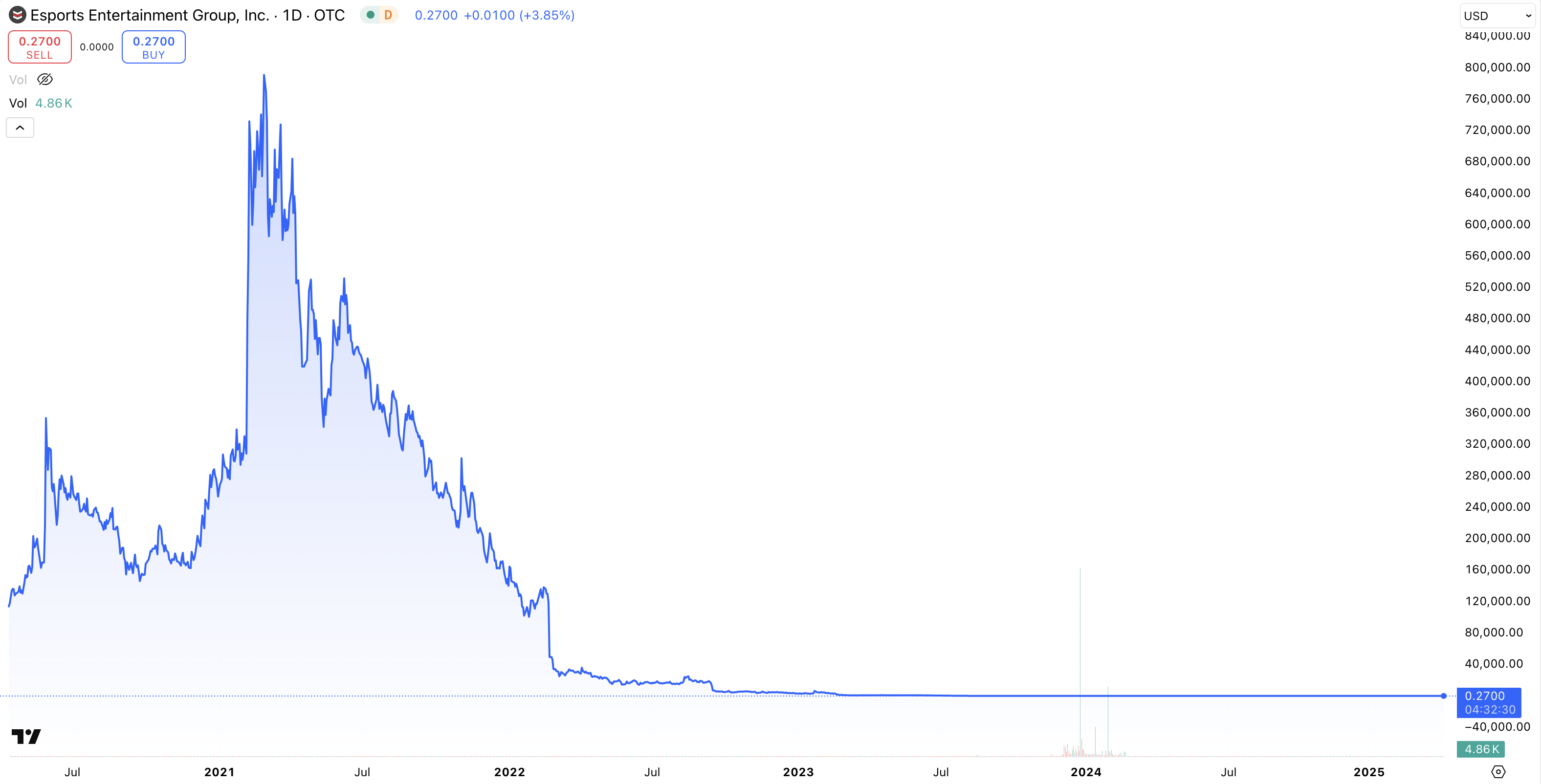 - Volatila kursrörelser – Volatilitet syftar till att en aktiekurs svänger kraftigt upp och ner under mycket korta tidsperioder. Detta är typiskt för en tillväxtbransch som e-sport. Det betyder att du kan råka ut för att aktiekursen sjunker med 30 – 40 % bara på några dagar.