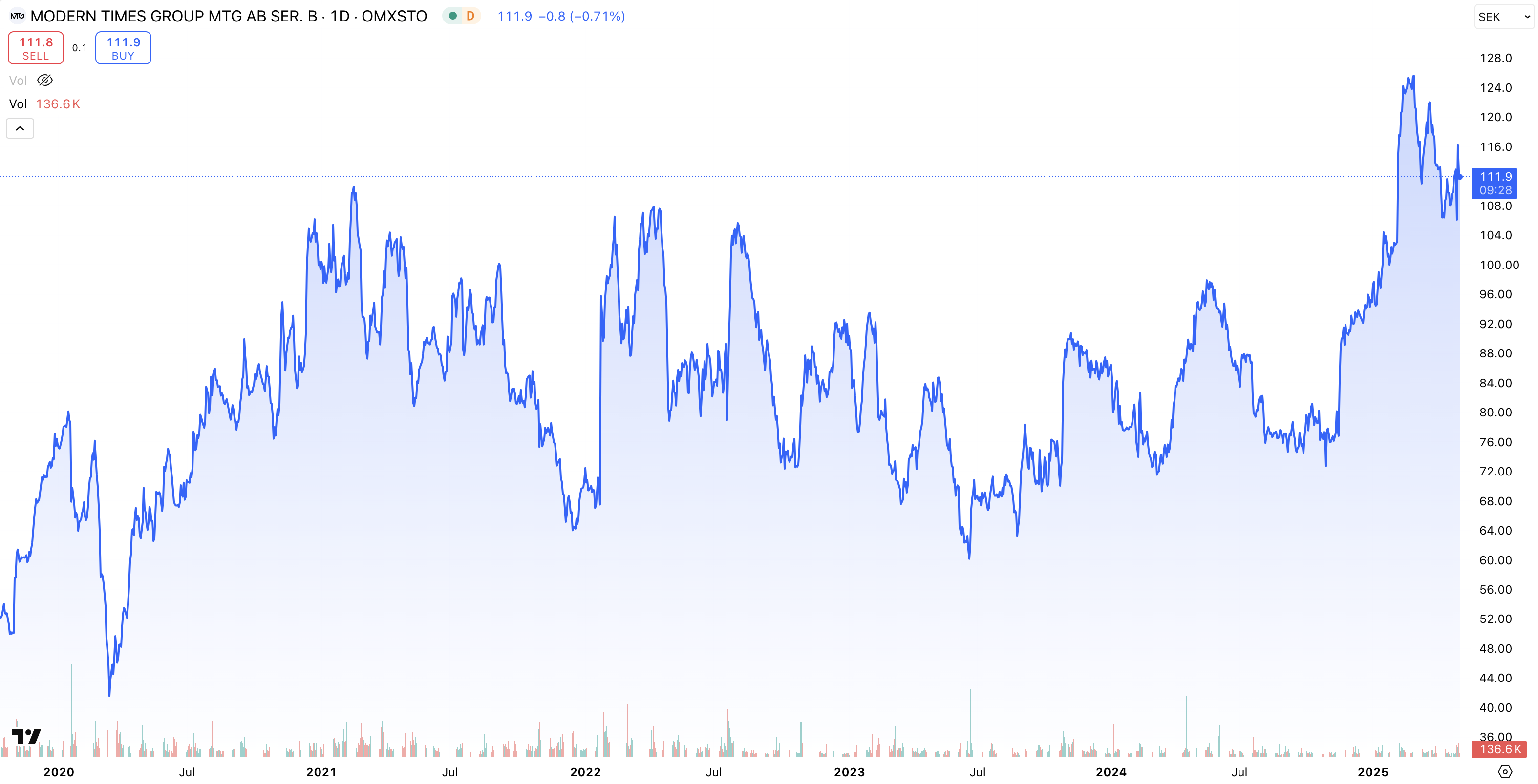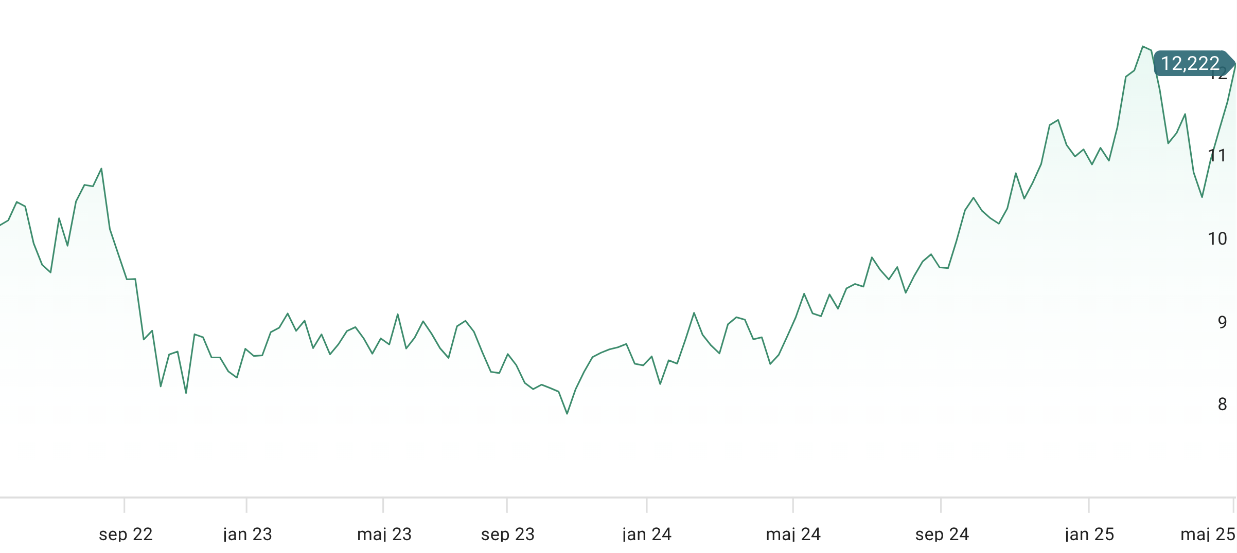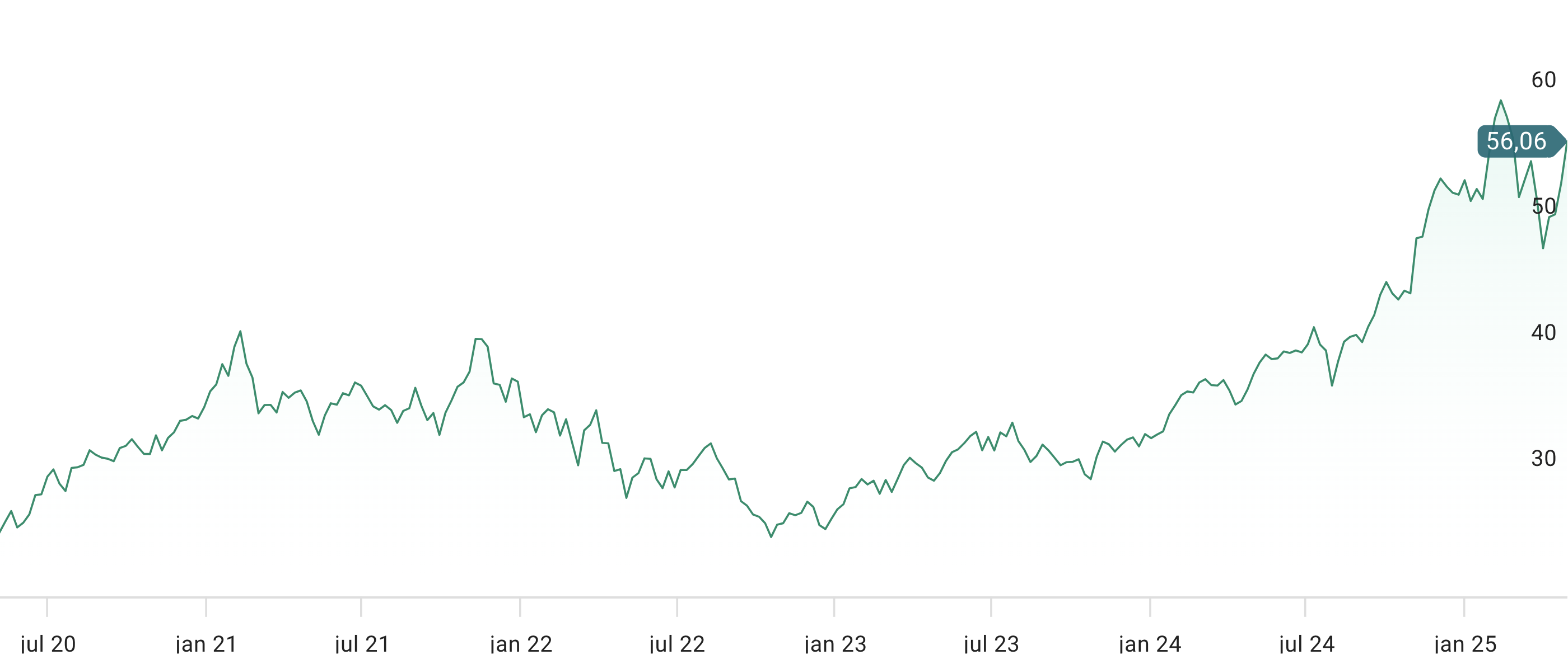 • Utv. 5 år: + 142 % (2020 – 2025)