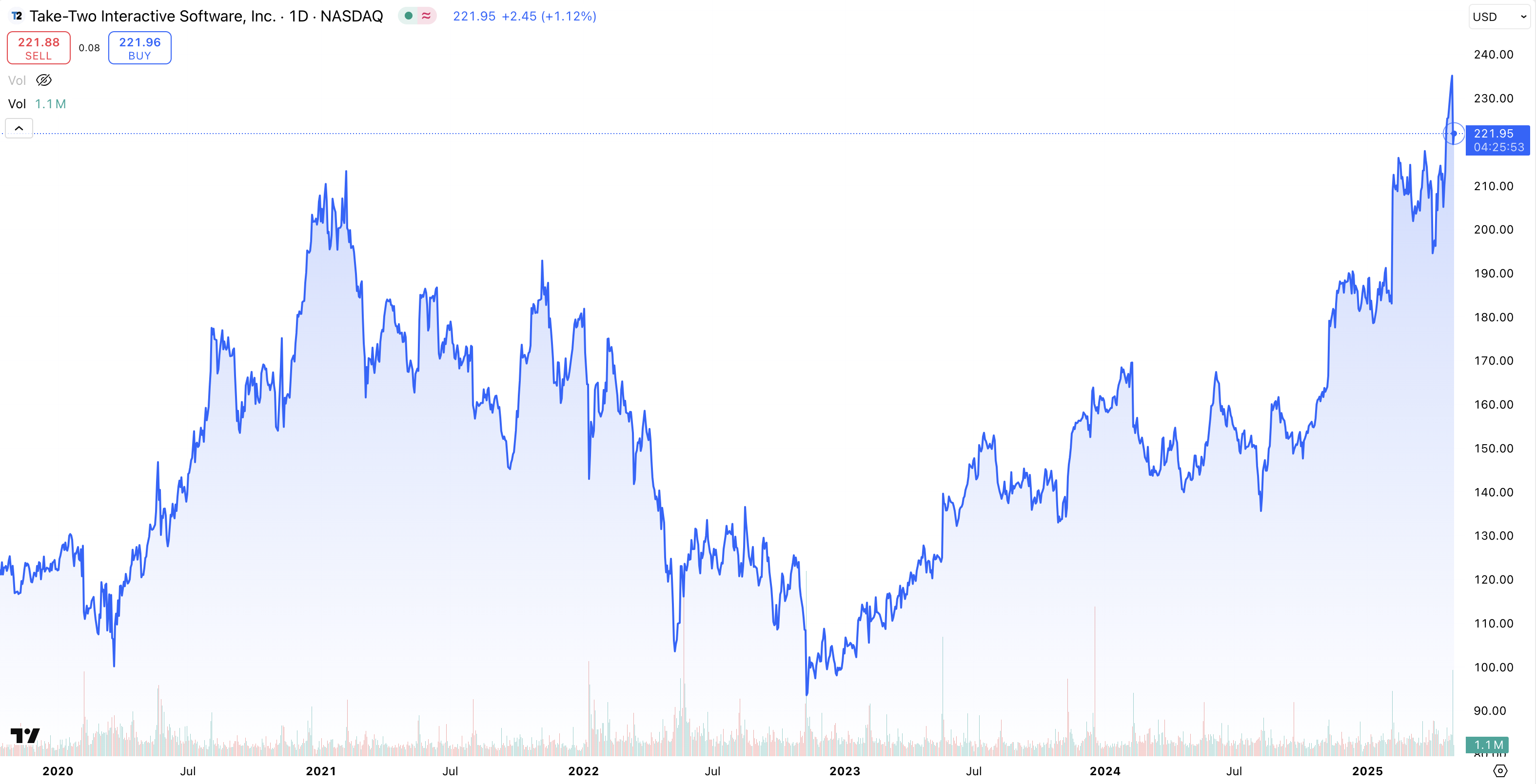 | 4 | Take-Two Interactive Software | + 76 % | Spelutveckling |