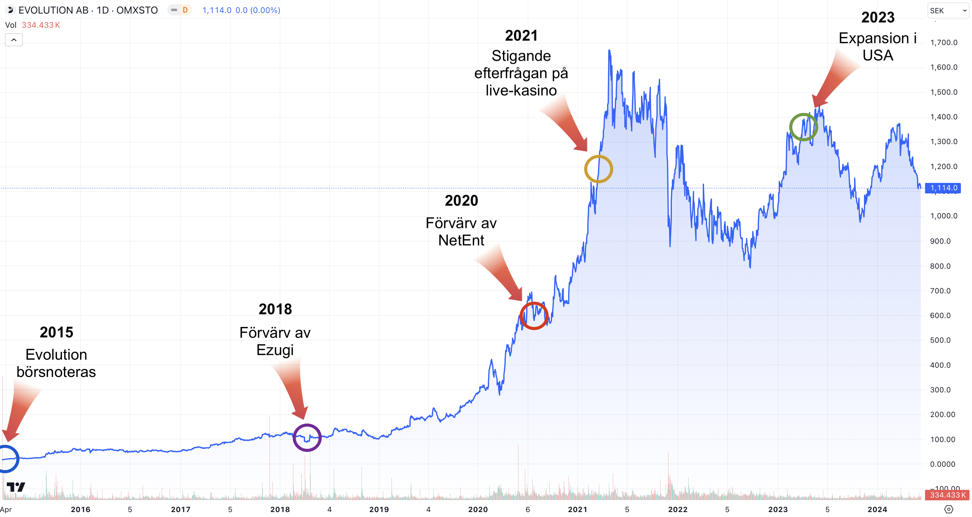 Evolution Gaming aktiekurs historisk utveckling, 2015 – 2024