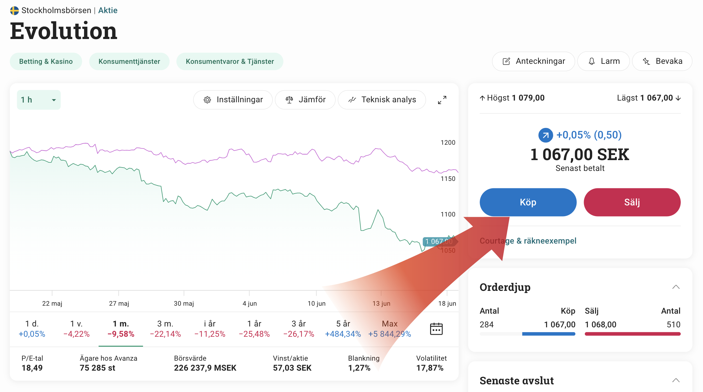 5. Köp Evolution aktie