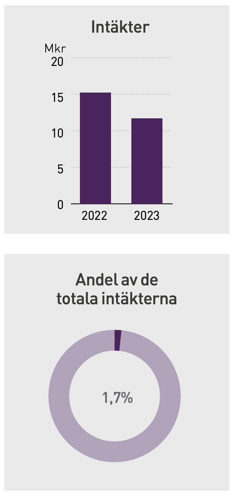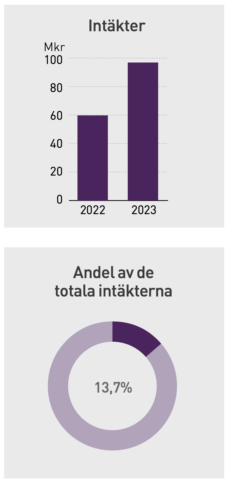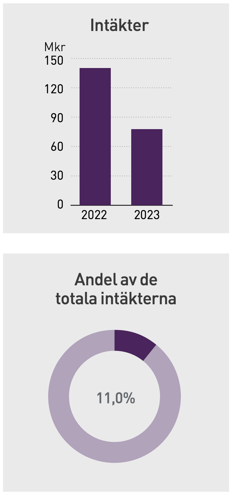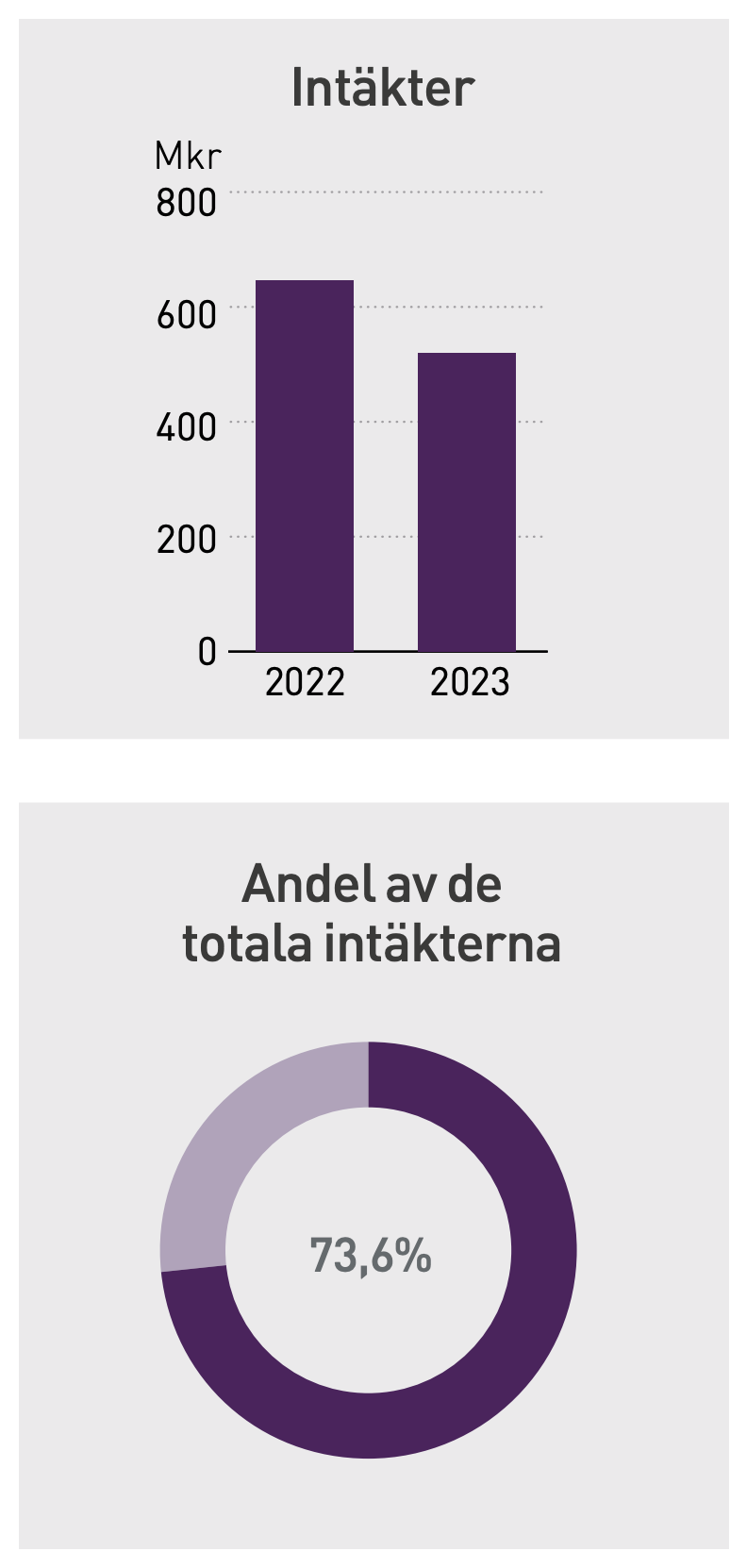 Bilden ovan visar hur omsättningen för produktkategorin “Mobile” utvecklats mellan 2022 och 2023, samt hur stor andel som intäkterna motsvarade av den totala omsättningen. Intäkterna sjönk mellan 2022 och 2023 efter ökad konkurrens från bl.a Apple. Läs mer i kapitel 3.