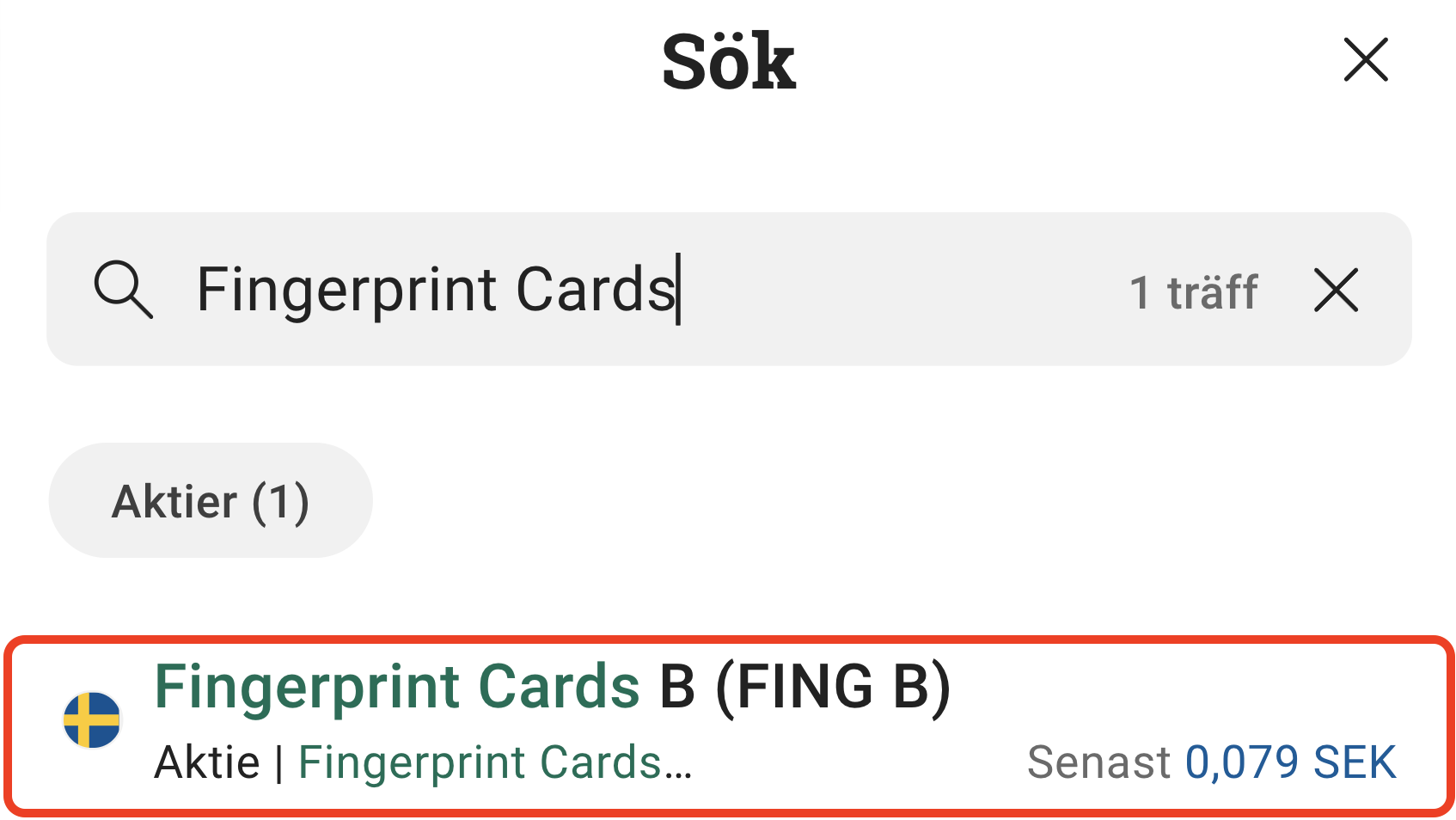 FING B är beteckningen för Fingerprint Cards aktie som handlas på Stockholmsbörsen.