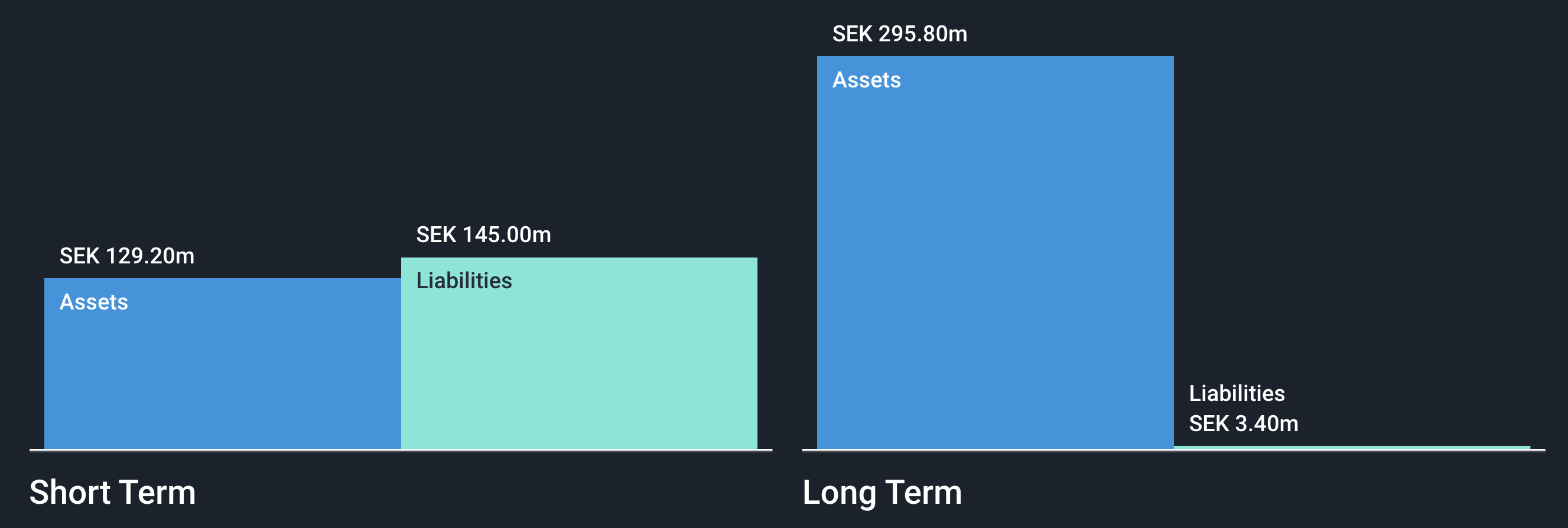 Bolagets totala skulder uppgick till ca 148 Mkr, varav långsiktiga skulder (en löptid på över 1 år) endast var 3,4 Mkr. Leverantörsskulderna uppgick till 40 Mkr. Det vill säga mindre än hälften av de kortfristiga skulderna (en löptid på mindre än 1 år).