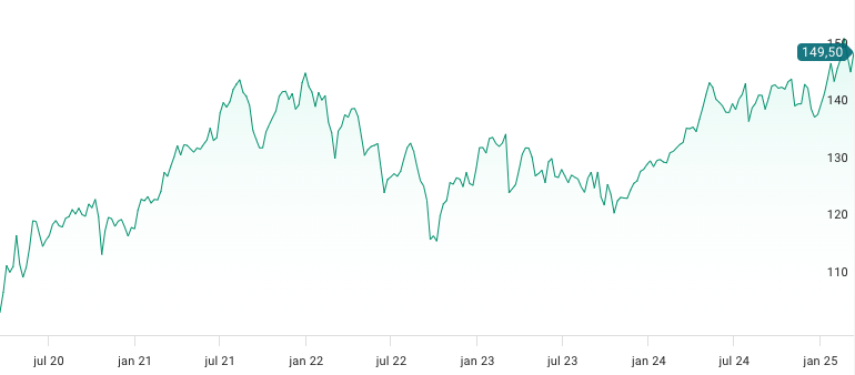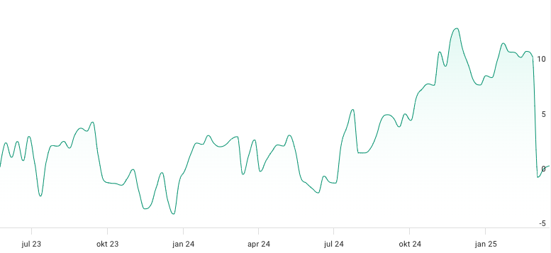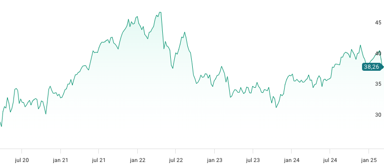 • Avkastning 5 år exklusive utdelning: + 36 % (2020 – 2025)