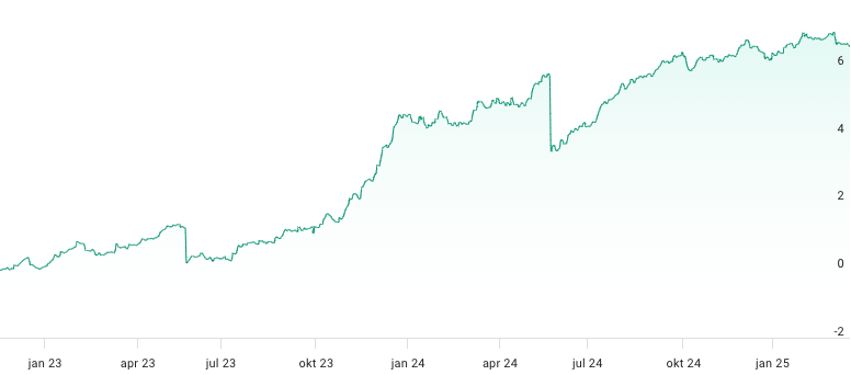 • Avkastning 5 år exklusive utdelning: + 7 % (2023 – 2025)