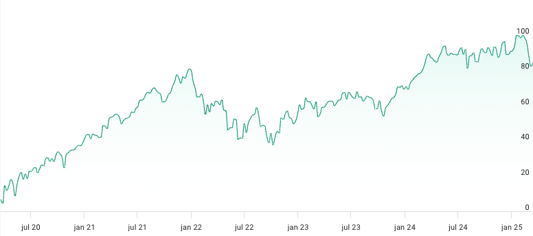 • Avkastning 5 år exklusive utdelning: + 101 % (2020 – 2025)