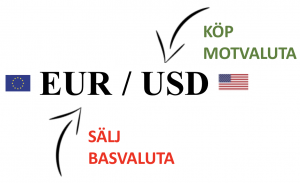 - Basvaluta (base currency) – Representerar valutan du redan har och skrivs alltid till vänster i ett valutapar.