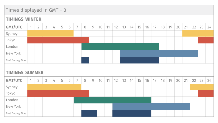 De största vinstmöjligheterna skapas när marknaden är volatil. De mest volatila perioderna är då de stora marknaderna (Sydney, Tokyo, London och New York) är öppna. Speciellt då New Yorks öppettider överlappar med Londons. Som daytrader kan det vara fördelaktigt att anpassa sig till marknadens öppettider för att handla med valutapar under de mest volatila perioderna.