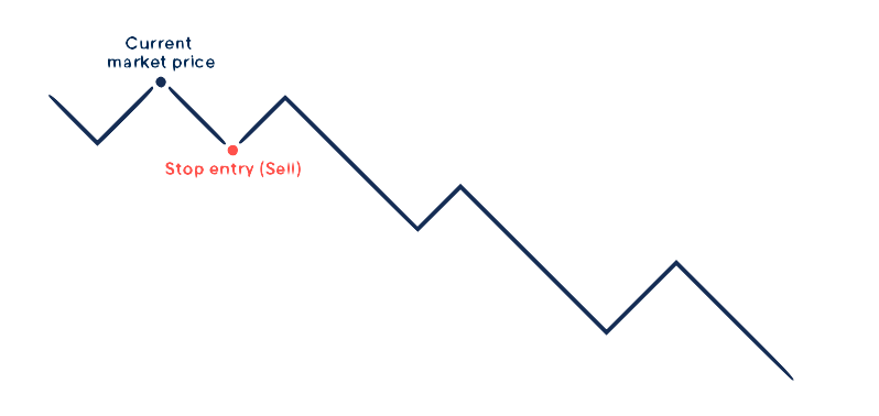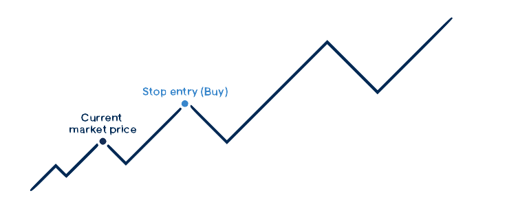 En stop-entry-order öppnar en position om kursen når en önskad nivå. I bilderna nedan visas en stop-entry-order för när du tar antingen en lång (köper) eller kort position (säljer).
