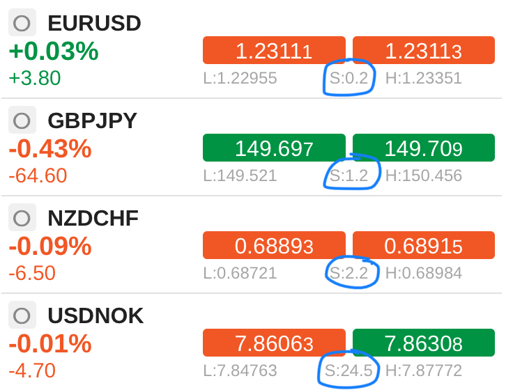 - Hög spread – En stor spread betyder istället att mäklaren försöker att tjäna mer pengar på sina kunder.