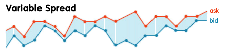 Rörlig spread, är precis som namnet antyder, spreadavgifter som ständigt förändras. Beroende på hur marknadsförhållandena ser ut kommer skillnaden i Ask- och Bid-priset att förändras.