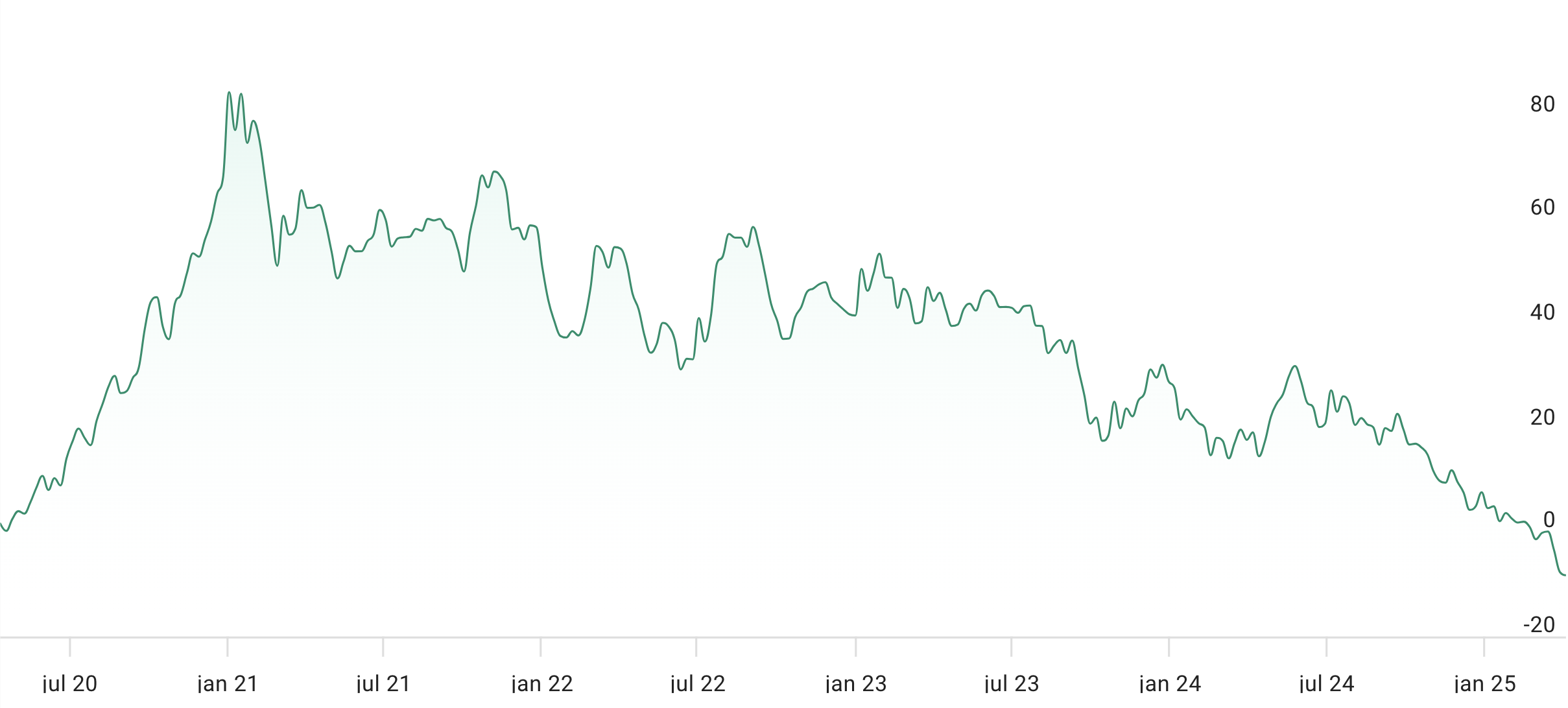 - Kursutveckling 5 år: + 84 % (2020 – 2025)