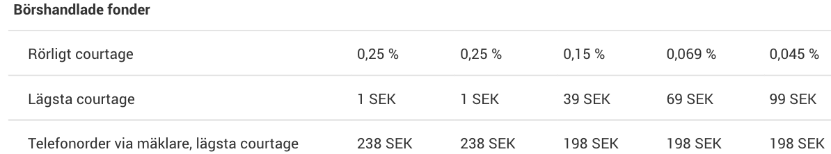 Sist men inte minst tillkommer courtageavgift. Den varierar beroende på vilket konto du har, samt för vilket belopp du handlar för. För de flesta privatsparare går det att handla för 1 kr per handelstillfälle.