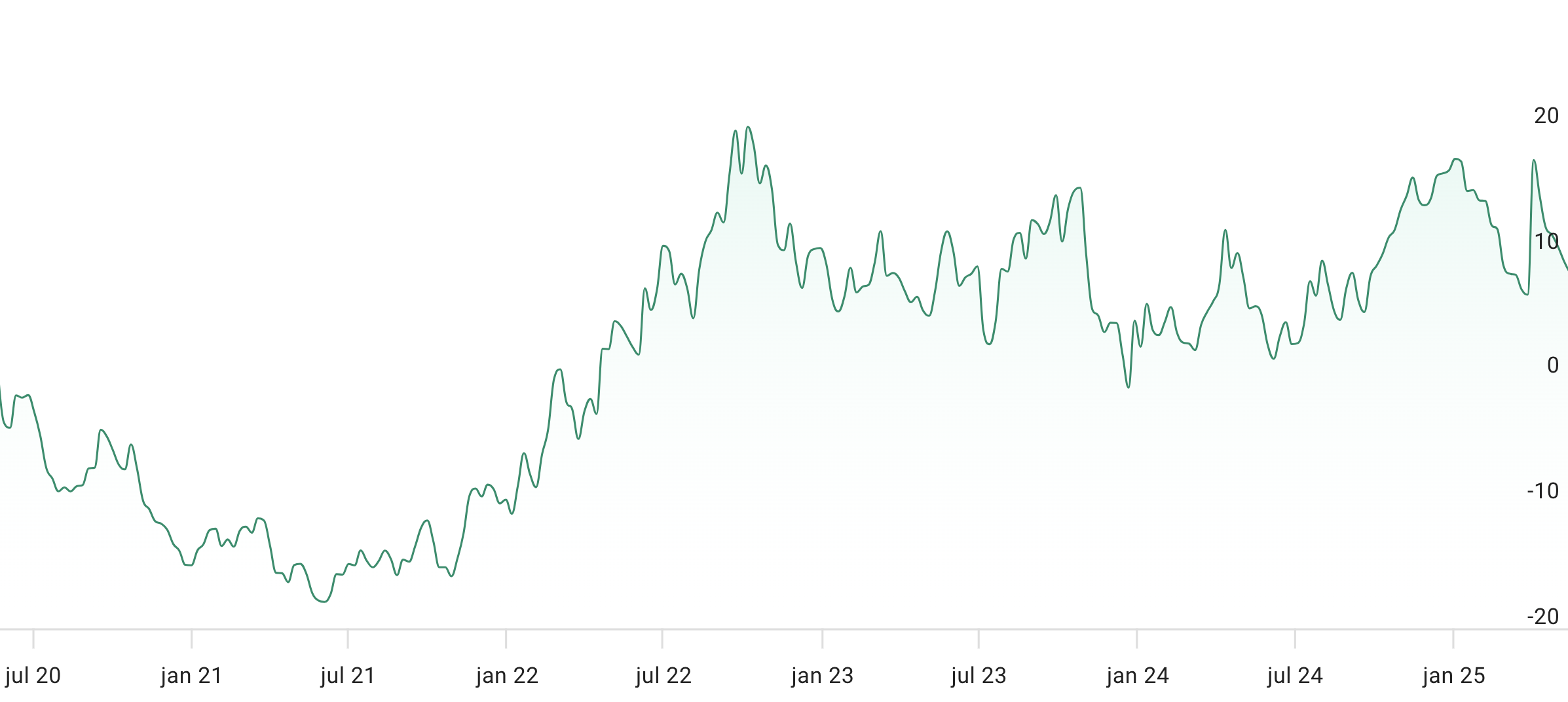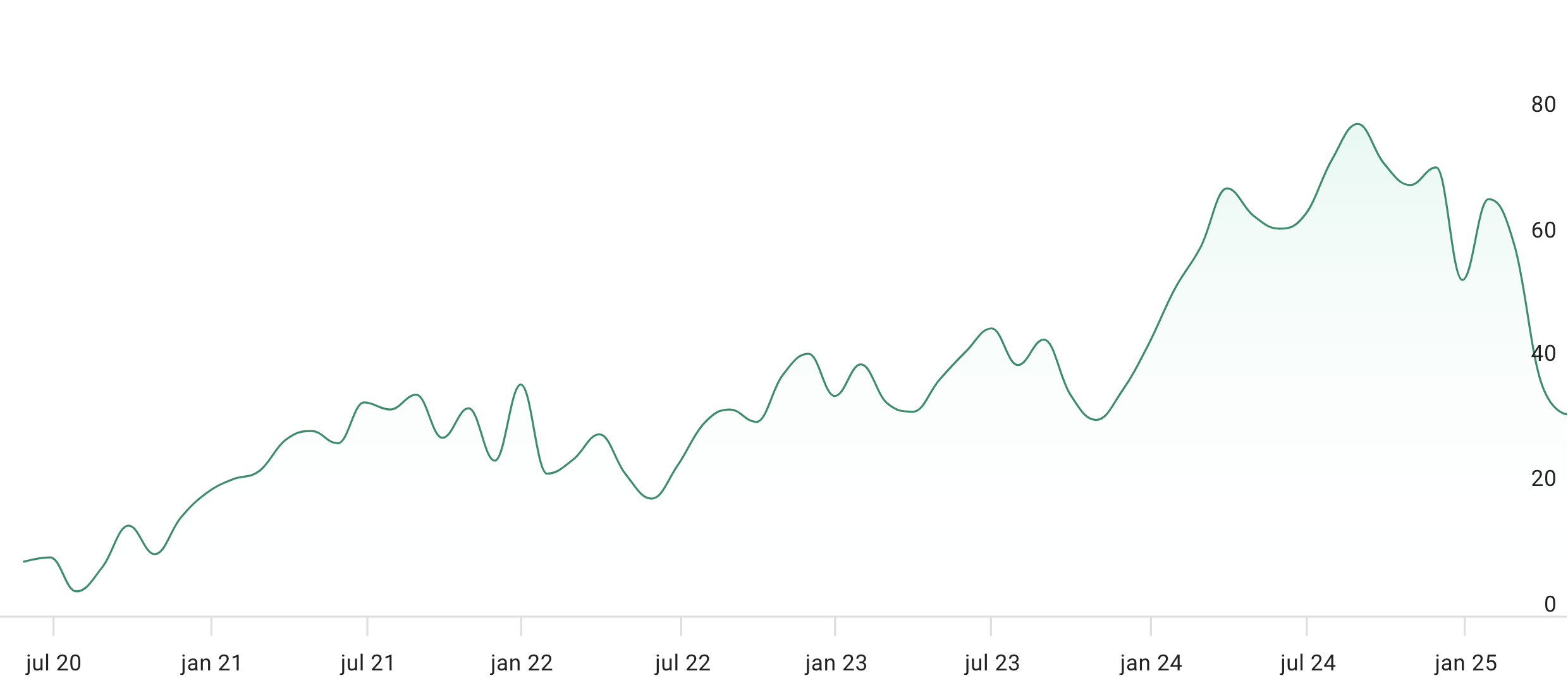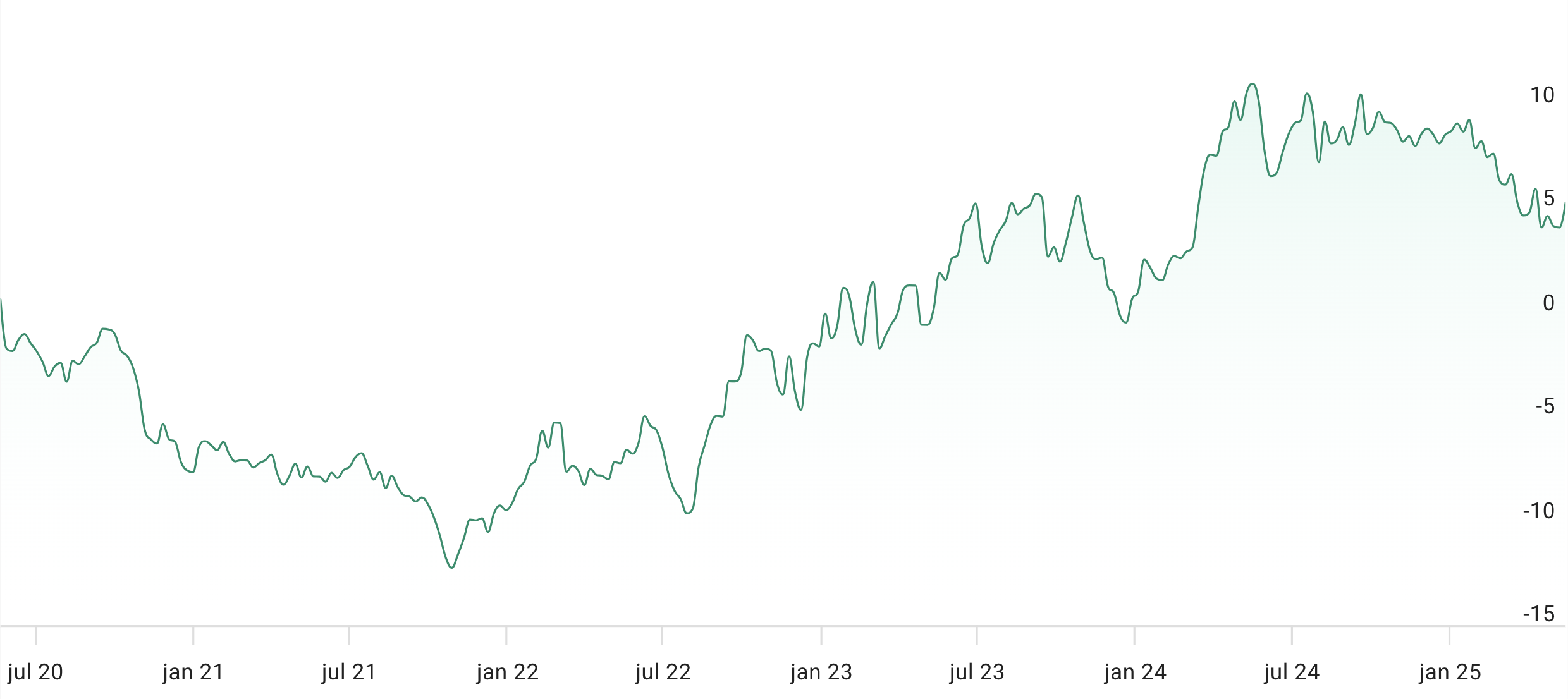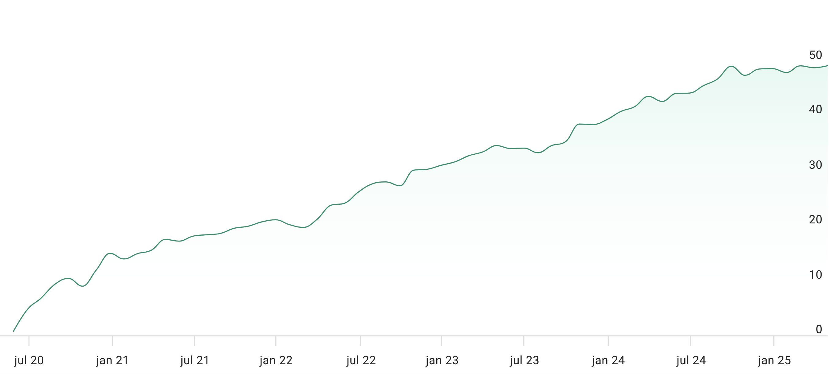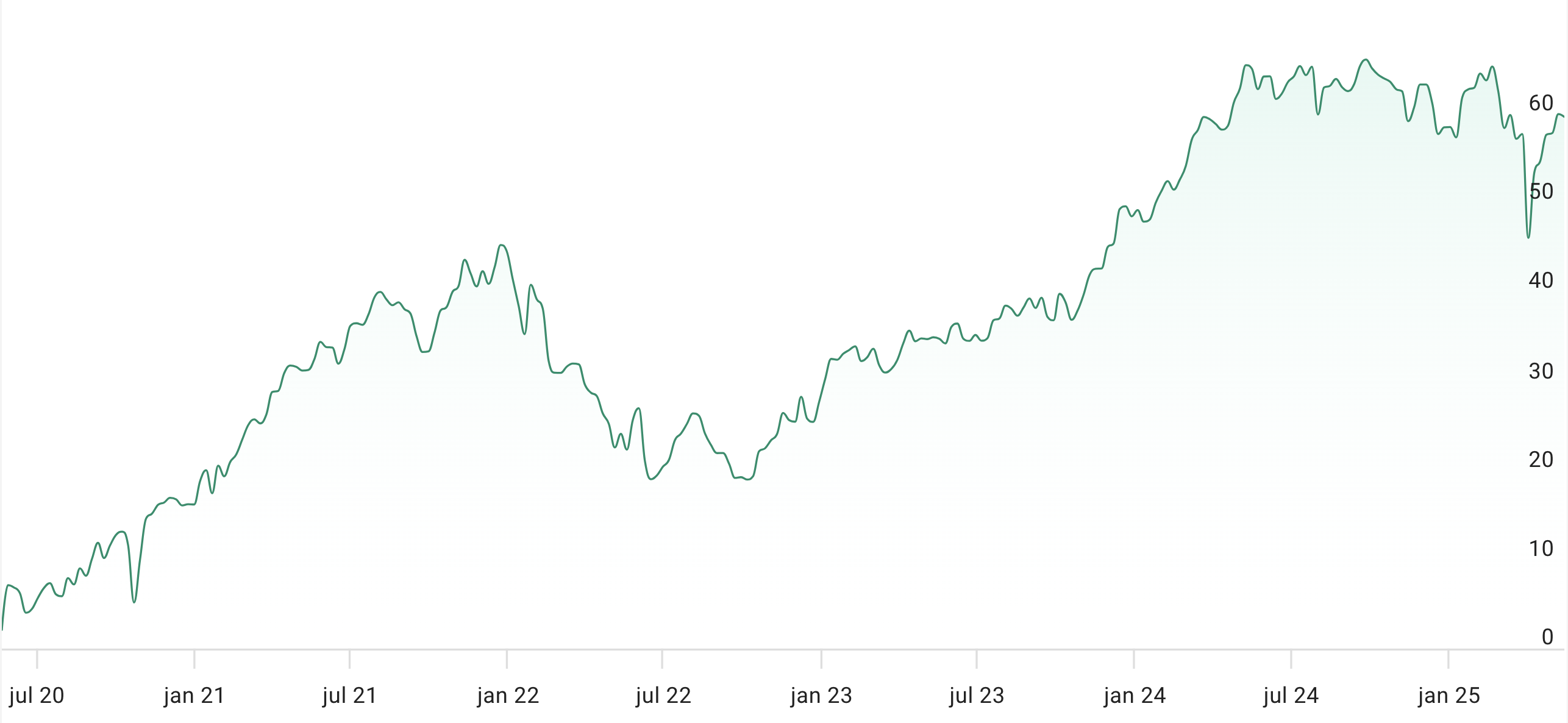 • Avkastning 5 år: + 59.74 % (2020 – 2025)